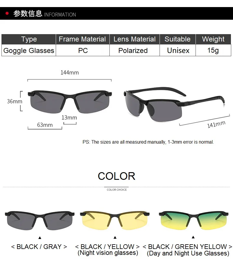 1/2PCS Night Vision Glasses Men Anti-Glare Driving Goggle Half Frame Polarized Sunglasses for Driver UV400 Day and Night Glasses