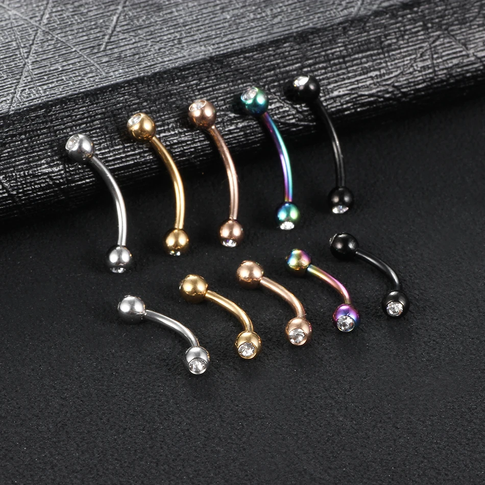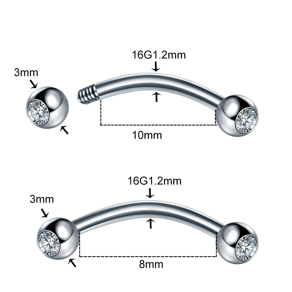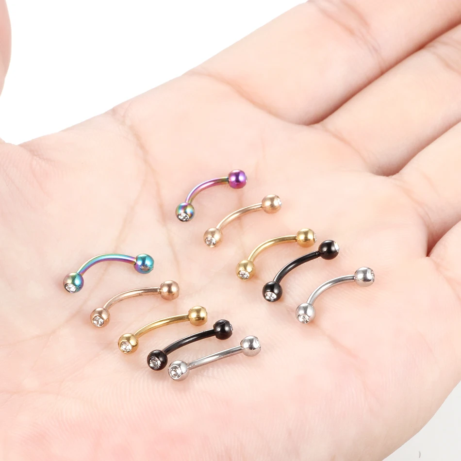 1PC 6/8/10mm Stainless Steel Banana Piercing Ring 3mm Ball Eyebrow Piercing Curved Barbell Ring Snug Daith Helix Rook Earring