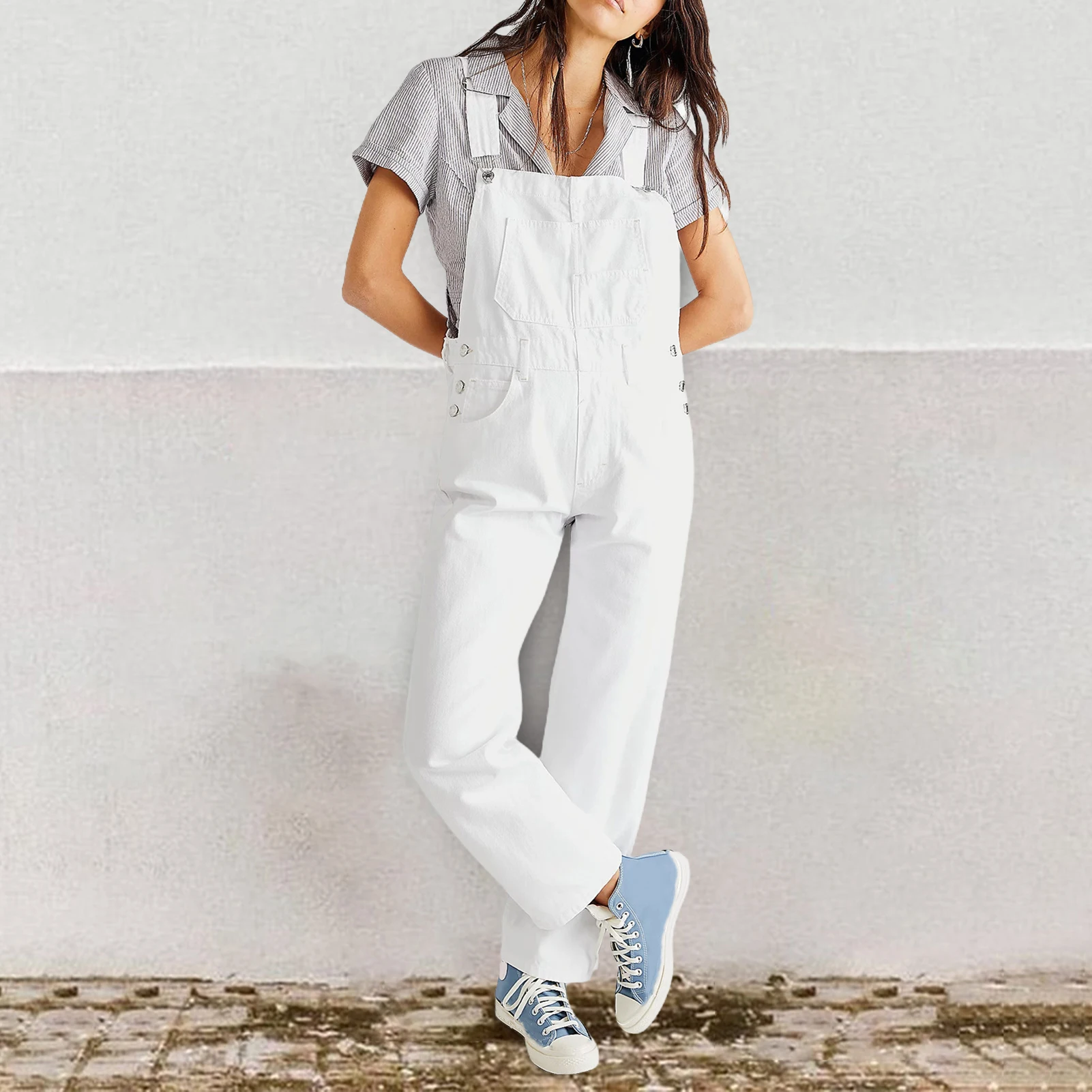 Featuring a long wide-leg design and solid color suspenders, this jumpsuit exudes simplicity and elegance. It can be easily paired with a T-shirt for a casual summer look or dressed up with a small bag and heels for a more sophisticated appearance. Whether you're attending a casual outdoor event, cocktail party, wedding, beach outing, vacation, or date night, this jumpsuit is the perfect choice.