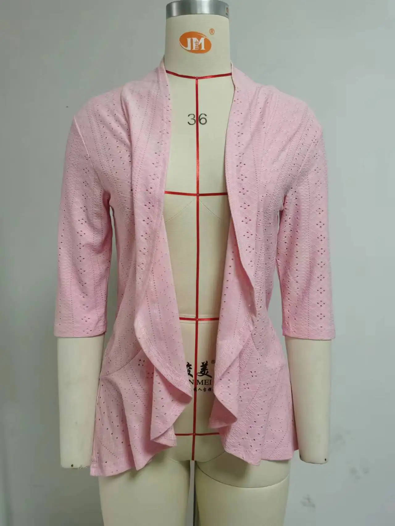 2024 Summer Fashion Ladies Hollow Out Cardigan Boho Tops Women Beach Outwear Casual Three Quarter Sleeve Sunscreen Shirt