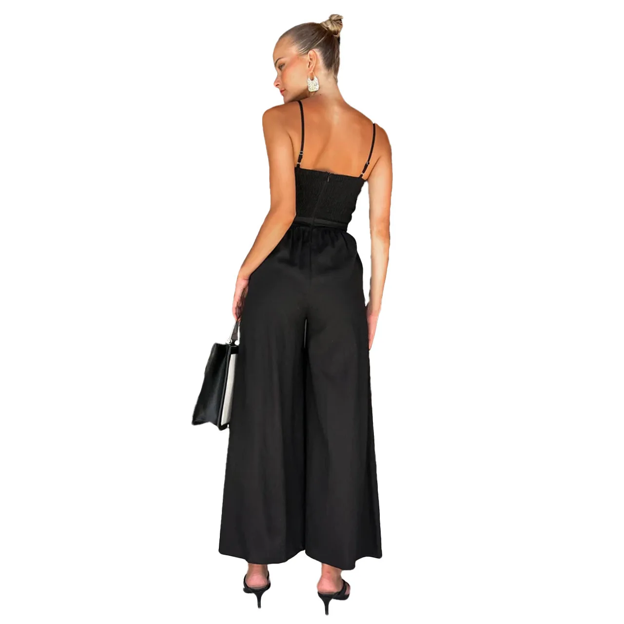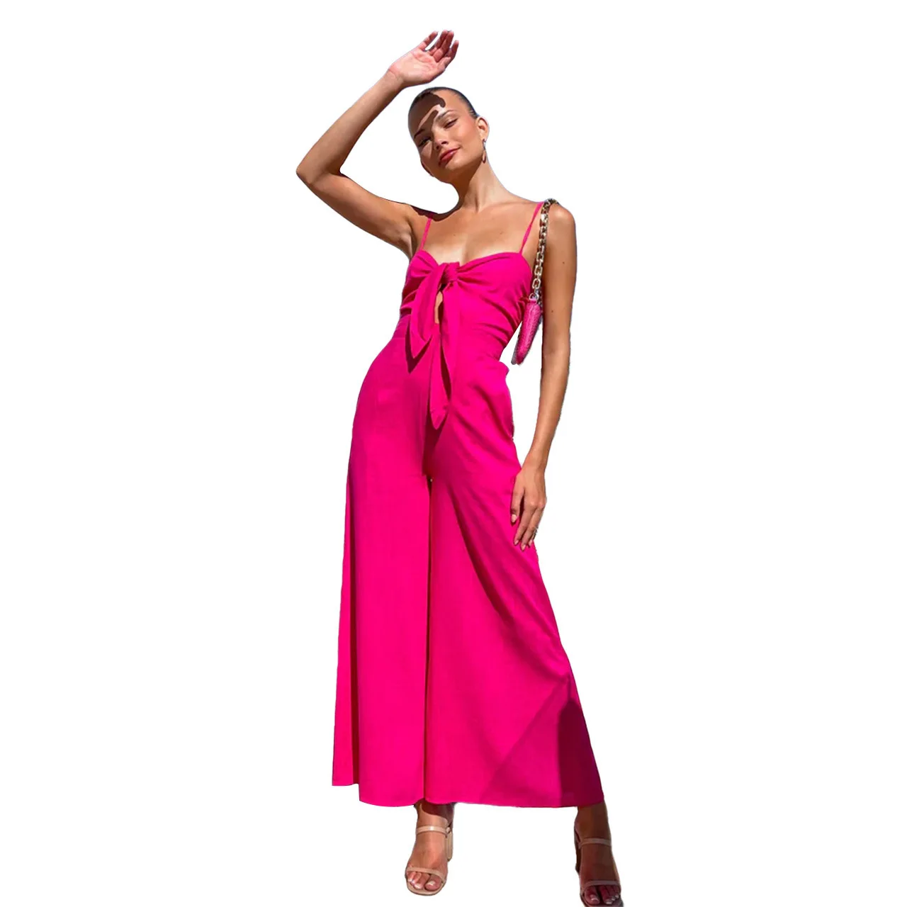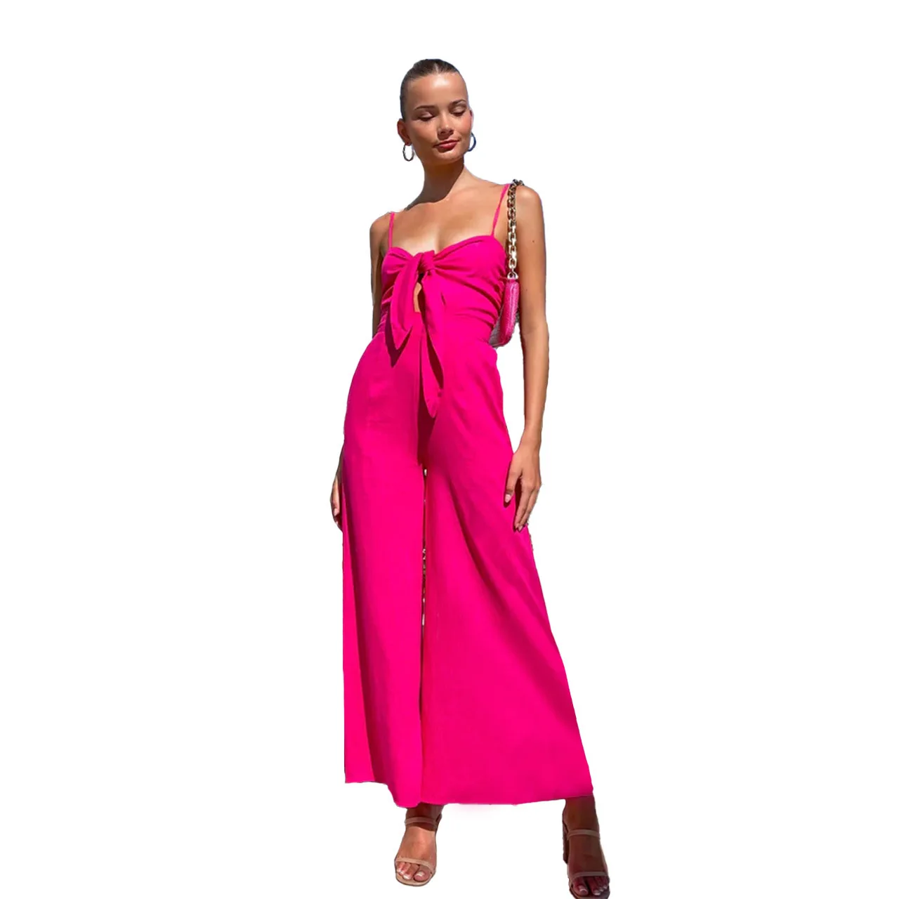 2024 Summer Fashion New Vacation Style Women's Jumpsuit Solid Color Temperament Slippery Strap Sexy Jumpsuit Wide Leg Pants