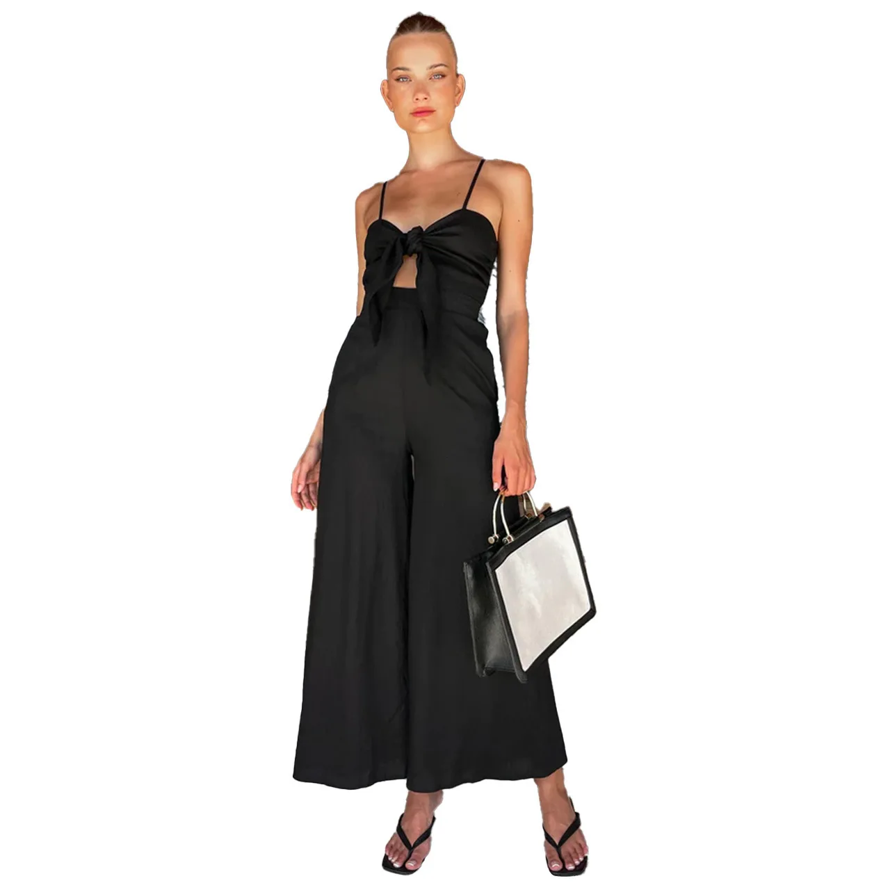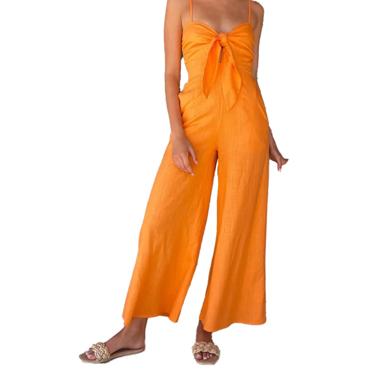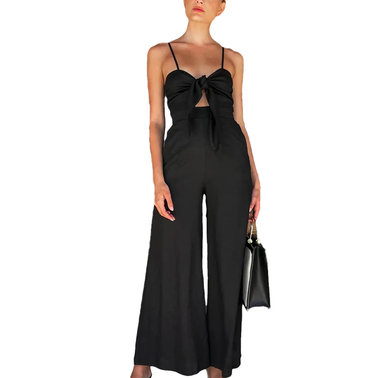2024 Summer Fashion New Vacation Style Women's Jumpsuit Solid Color Temperament Slippery Strap Sexy Jumpsuit Wide Leg Pants