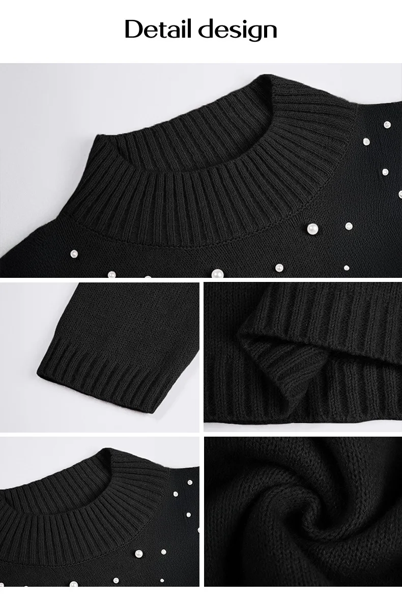 2025 Autumn Women Sweater Dresses Pearls Round Neck Long Sleeve Hip Wrap Dress Winter Elegant Ladies Casual Solid Slim Fit Dress
