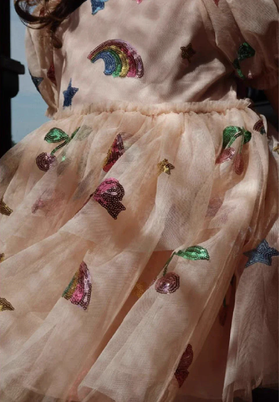 2025 Girls Party Princess Dress KS Kids Sequin Mesh Dresses Girl Full Print Dress Carnival Party Baby Cute Skirt Children Gifts