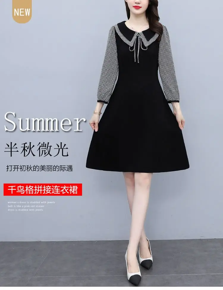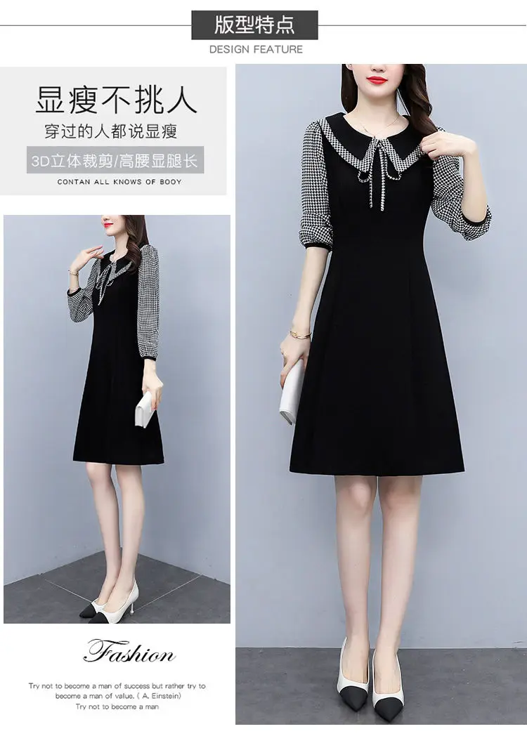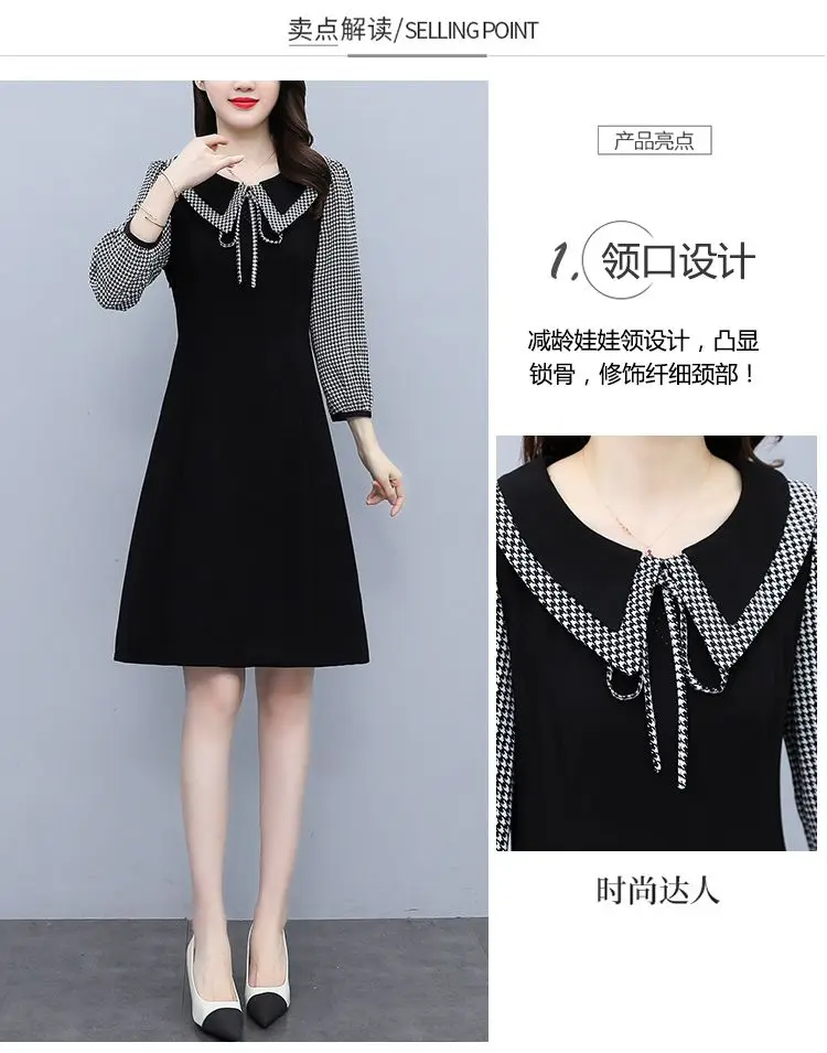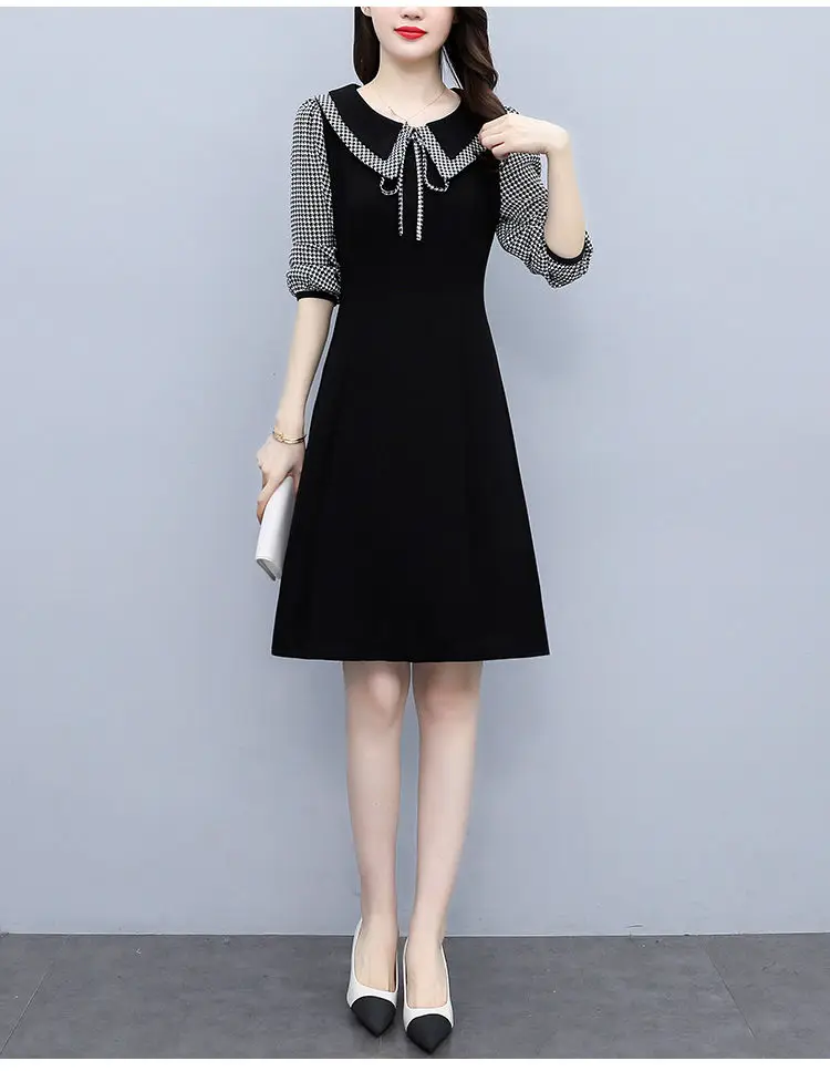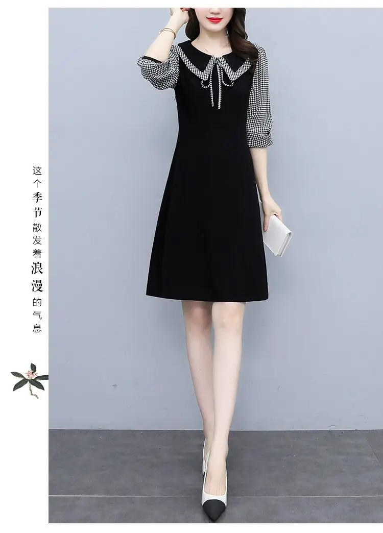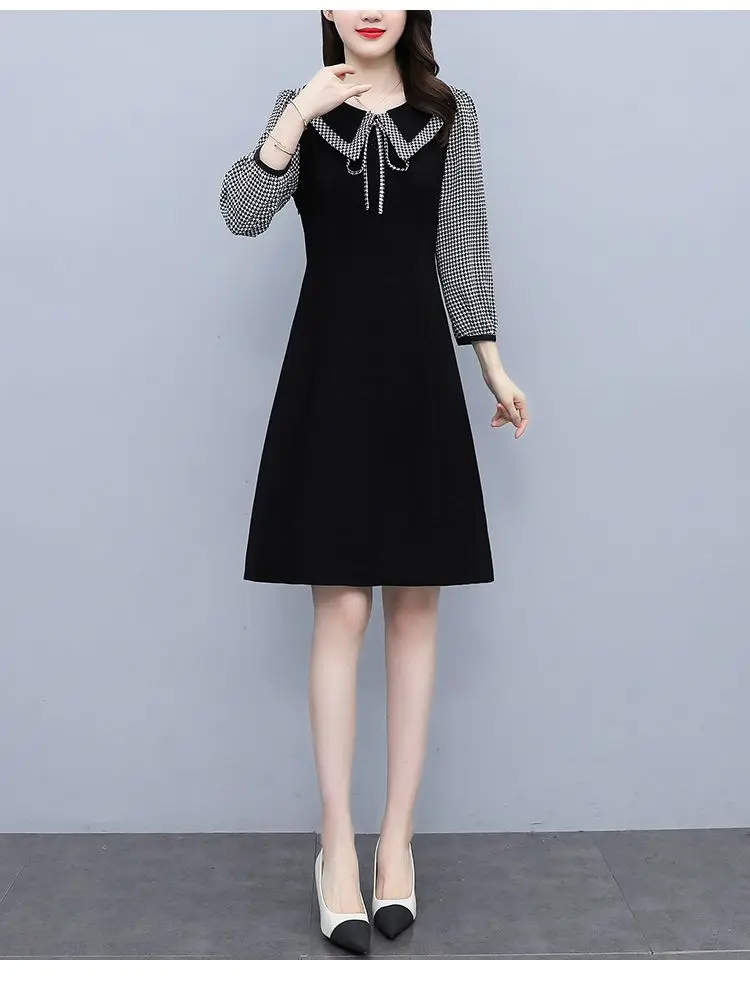 2025 New Spring Autumn Wear Temperament Small Flavor Style Slim Skirt Doll Collar Fashion Dress Women