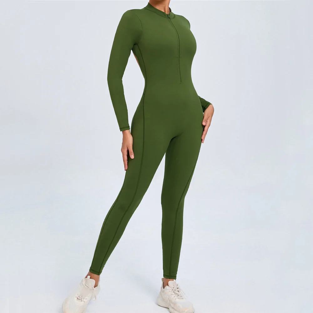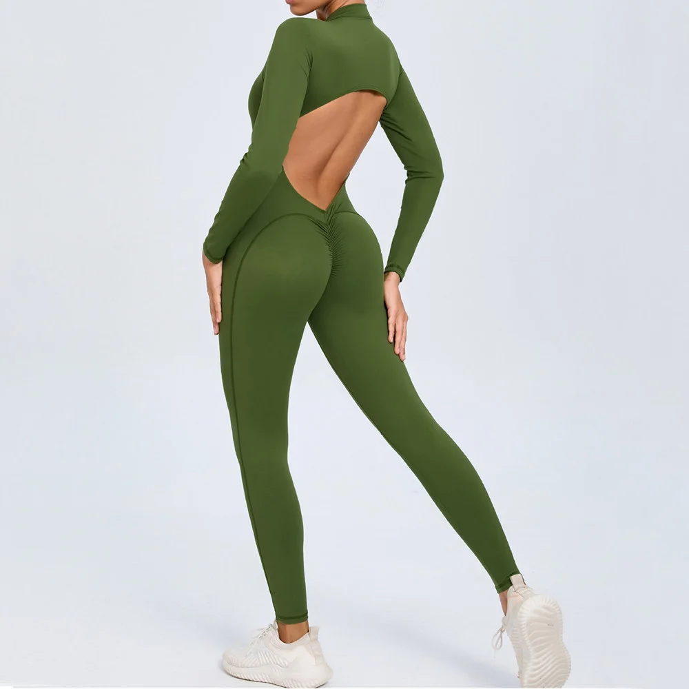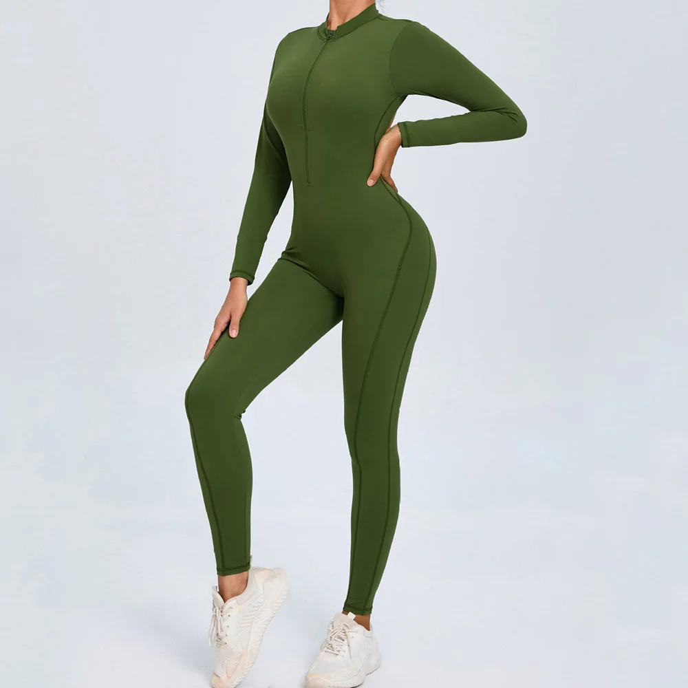 2025 Pad Zipper Long Sleeve Yoga Set Women One Piece Jumpsuit Gym Workout Shorts Fitness Bodysuit Sports Athletic Suit XP358