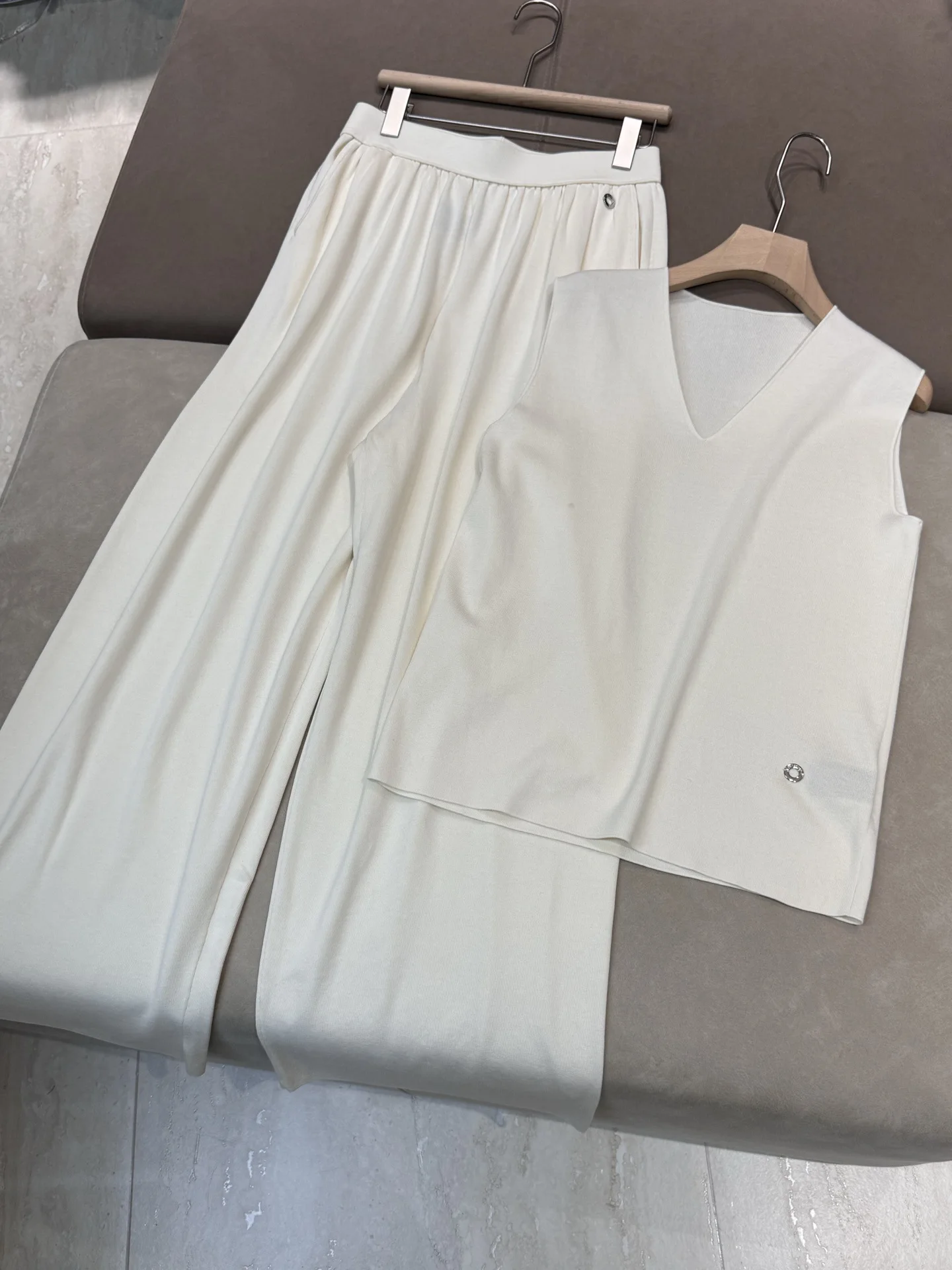 2025 Spring/Summer New Silk Cotton Blended V-neck Fashion Vest Top Casual All-match Straight Wide-leg Pants suit