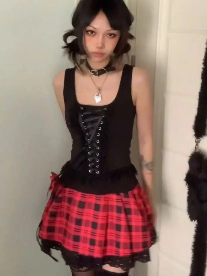 Punk Grunge Camisole Tops Sleeveless Womens Prints Cute Crop Tops Y2K Clothes 2000s Top Aesthetic Streetwear Emo Girls Tank Tops