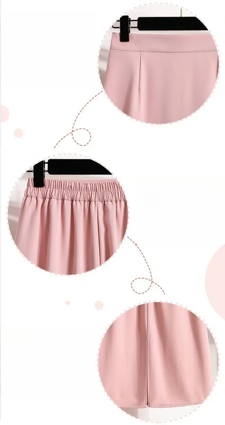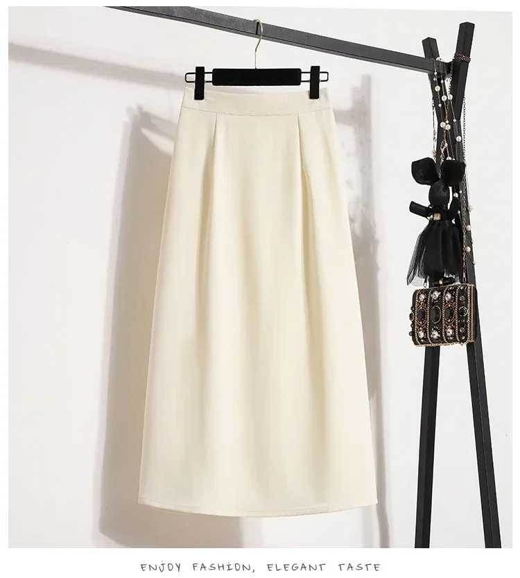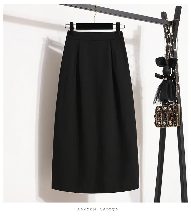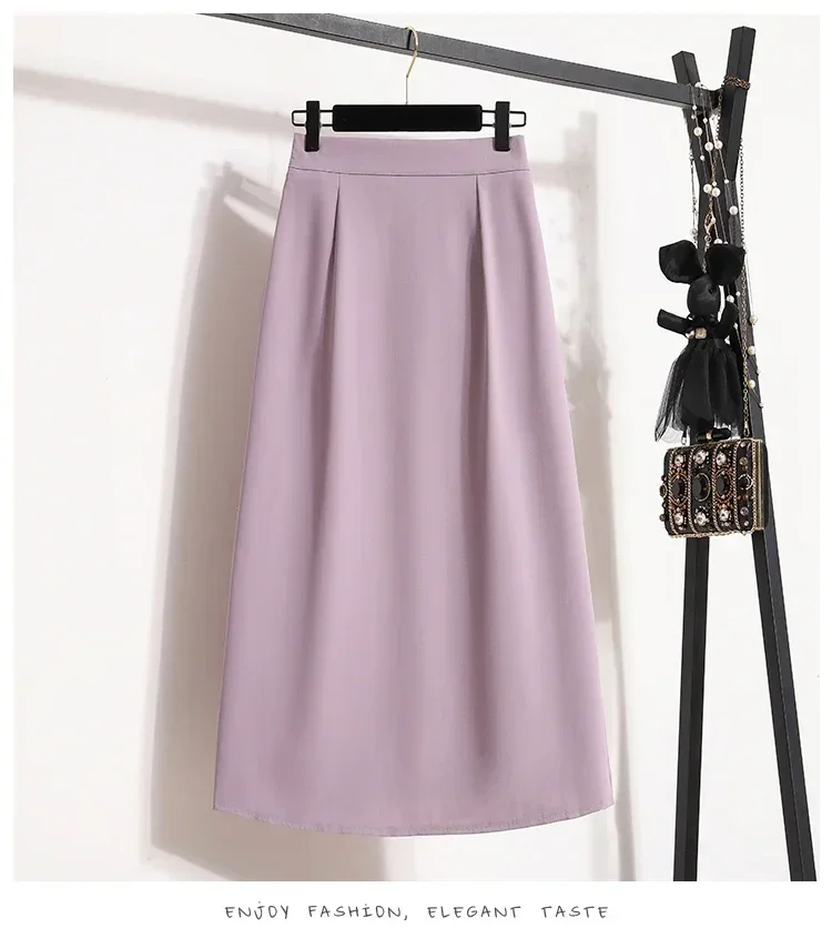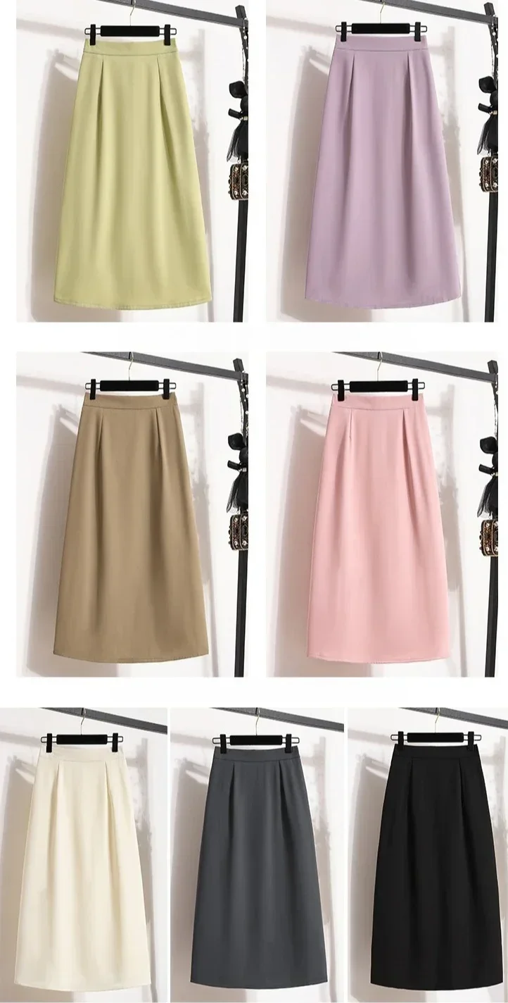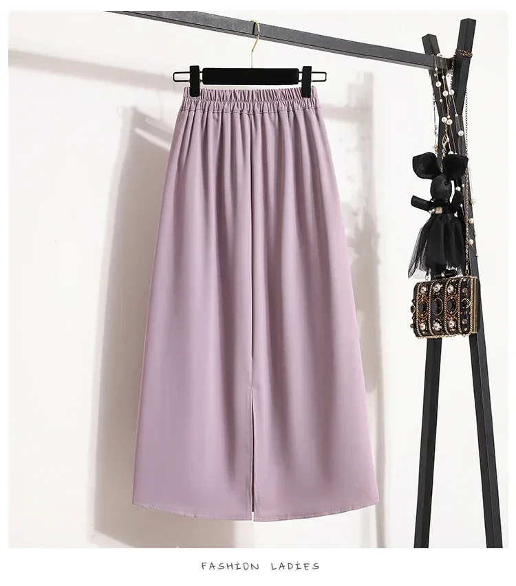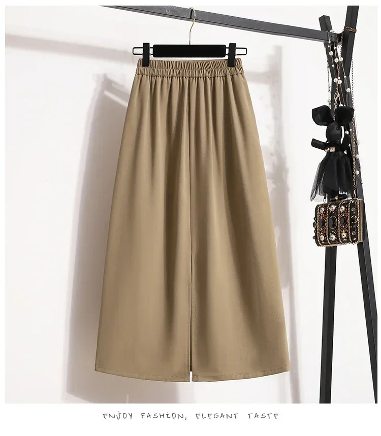 2025 Summer Female Fashionable Versatile Solid Skirts High Waisted Mid Length A-line Plus Size Skirt Split Wrap Body Skirt