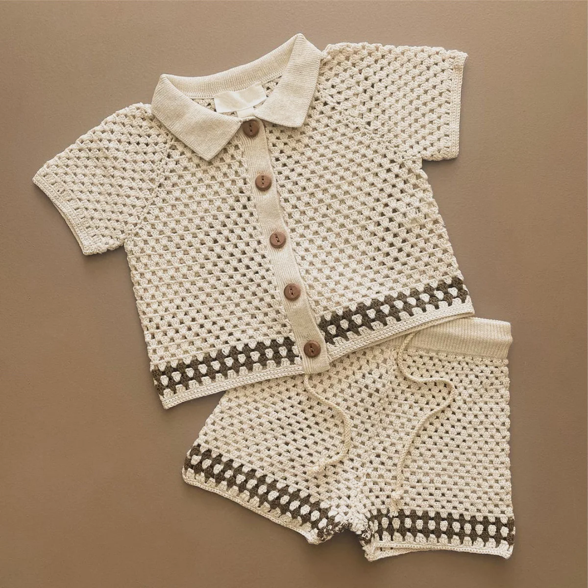 2025 Summer New Baby Short Sleeve Hollow Knit Cardigan Solid Infant Girl Coat Cotton Toddler Boys Knitted Jacket Kids Clothes