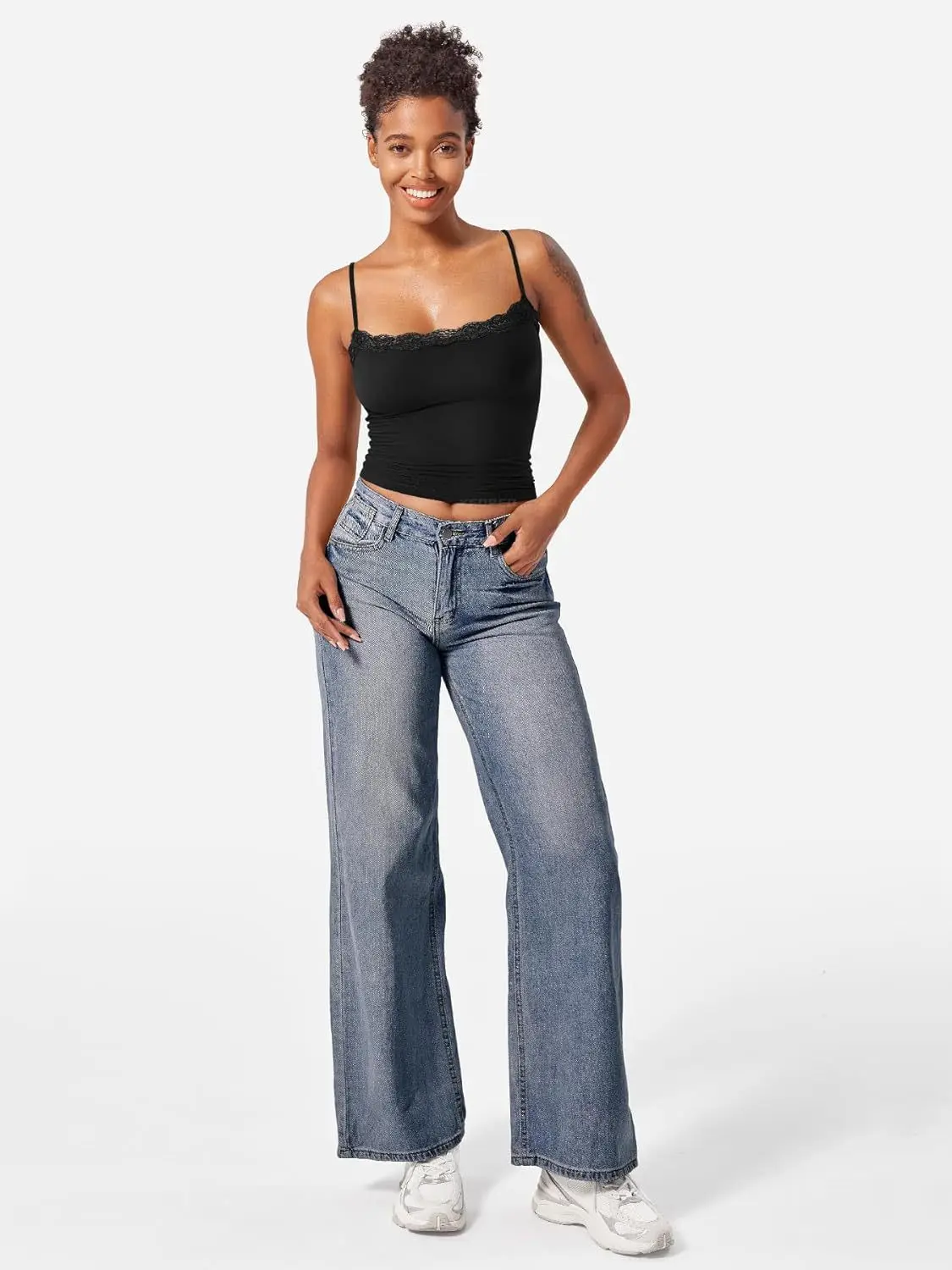 2025 Women Lace Tanks Top Spaghetti Strap Lace Square Neck Sleeveless Match Pants Soft Pullover Summer Camisole Women Clothes