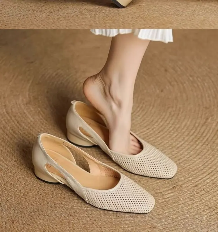 2025 Women's Breathable Knit Slip-On Flats Openwork Mesh Pointed Toe Shoes Lightweight Casual Slippers for Southeast Asia