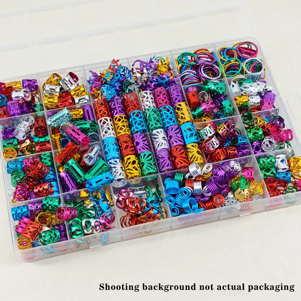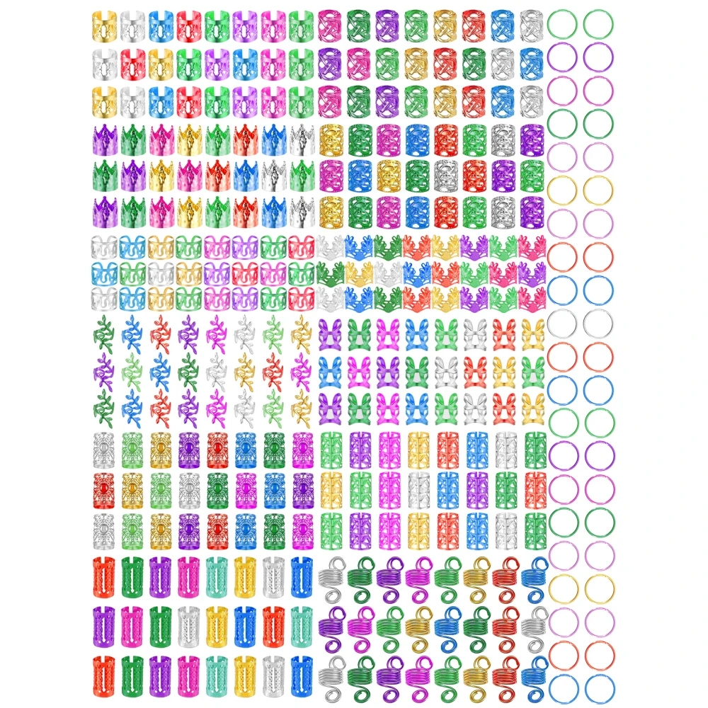 280pcs Alloy Hair Accessories Set, Elegant BOHO Style, Hollow Beaded Designs, Round Shape, Solid Color Hair Jewelry