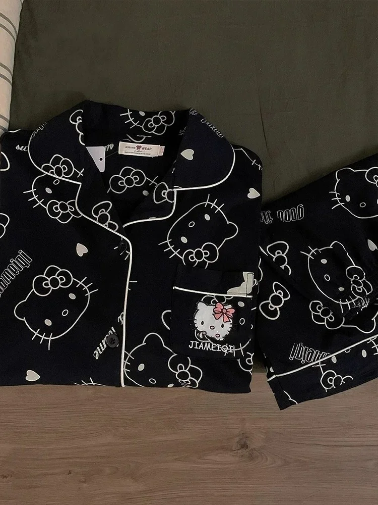 2Pcs/Set Hello Kitty Pajamas Anime Student Loungewear Kawaii Cute Girls Home Wear Shirt Shorts Set