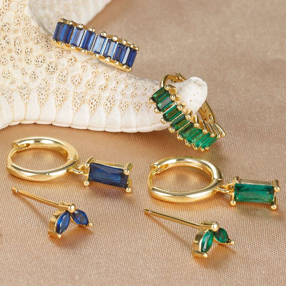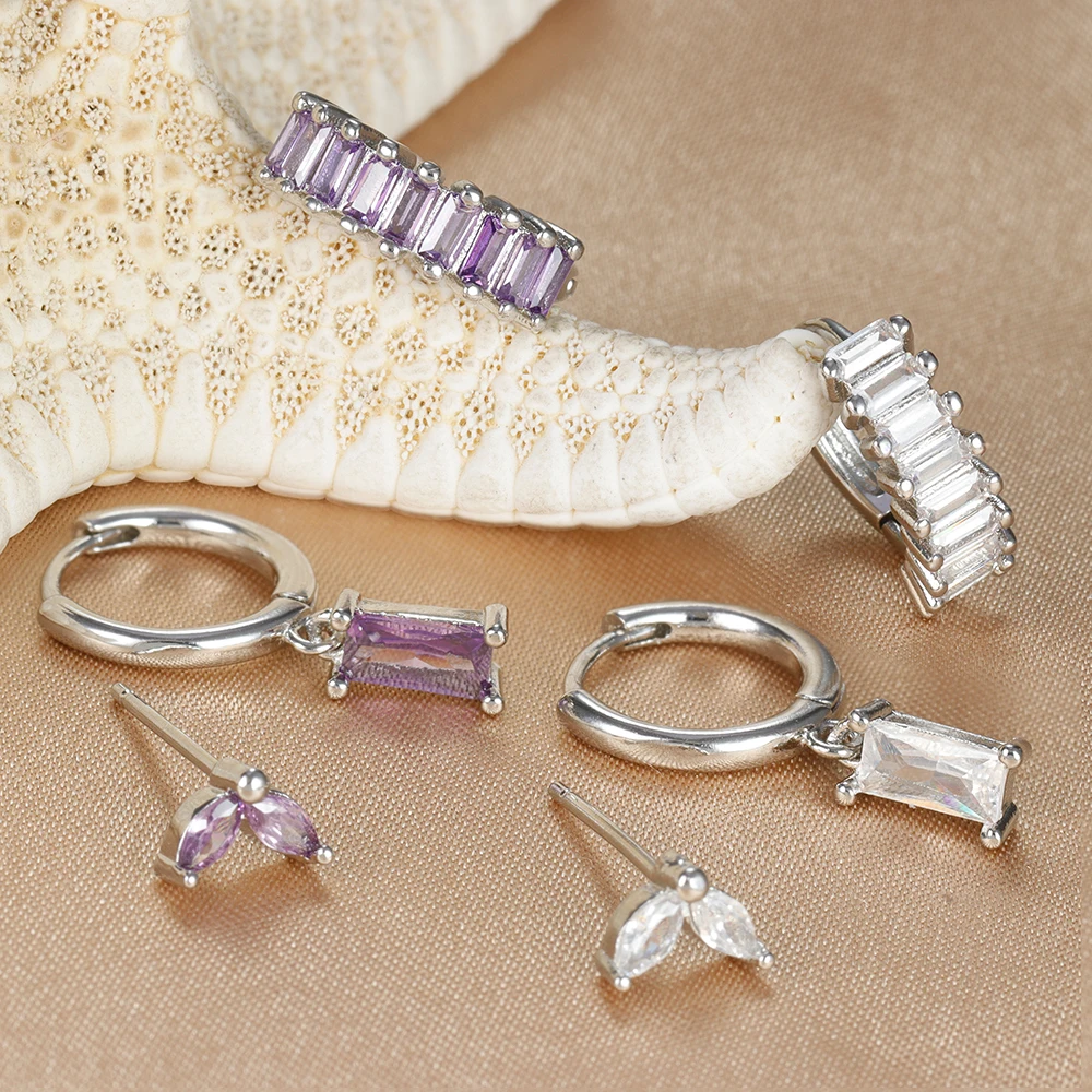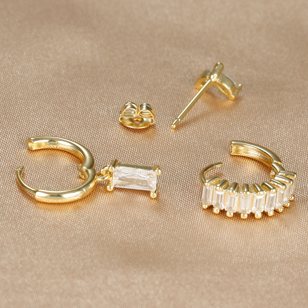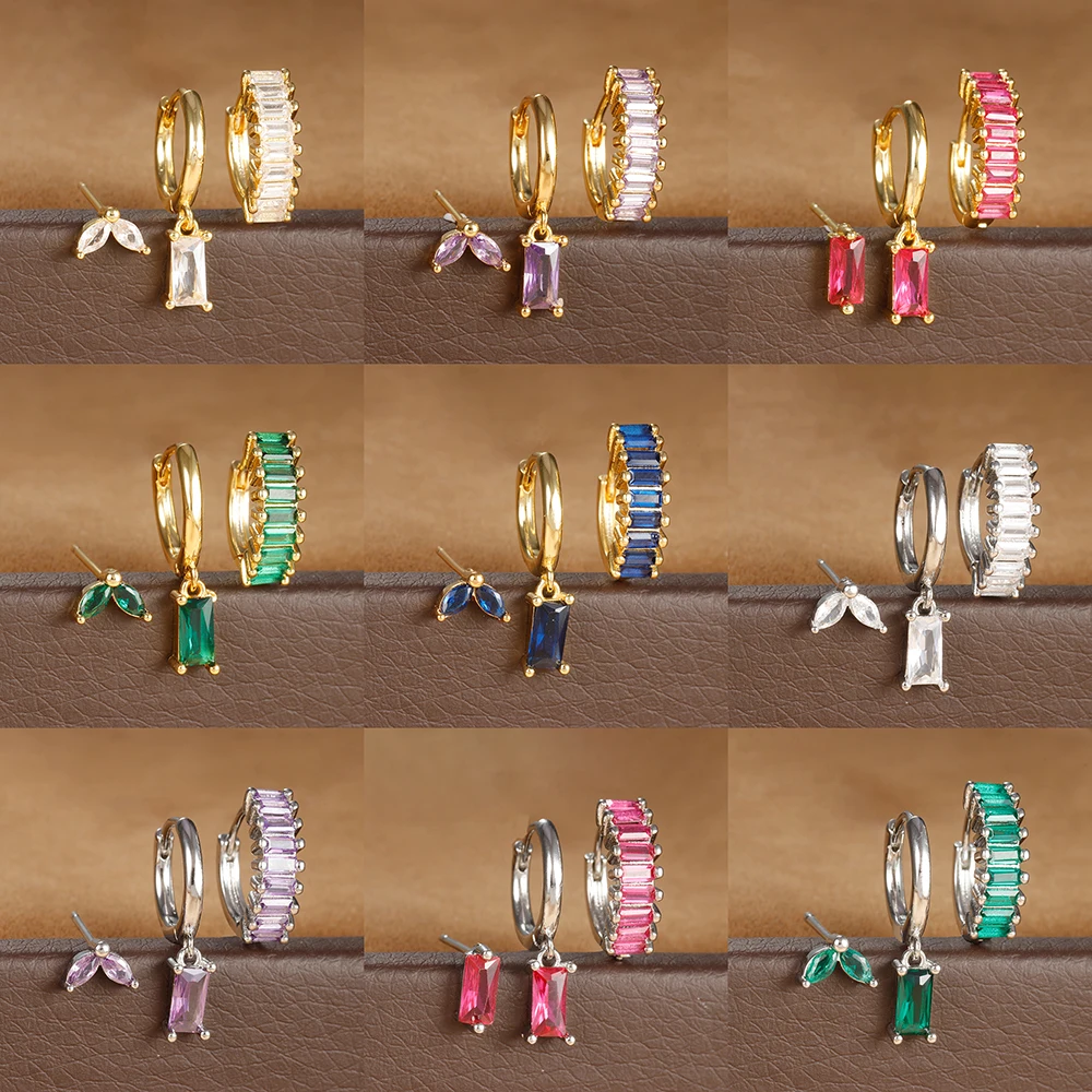 3PCS Stainless Steel Square Earrings Sets for Women Vintage Zircon Pendant Geometry Round Circle Hoop Earrings Piercing Jewelry