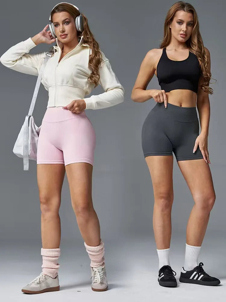 4.5'' Impact Shorts Seamless Low Ribbed Waistband Gym Shorts Scrunch Bum Yoga Shorts Booty High Stretch Running Bike Shorts
