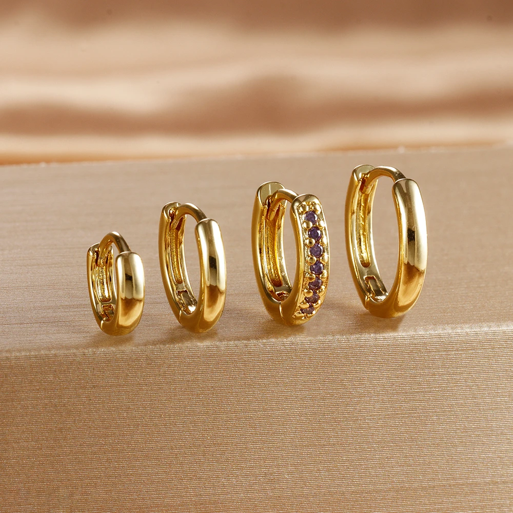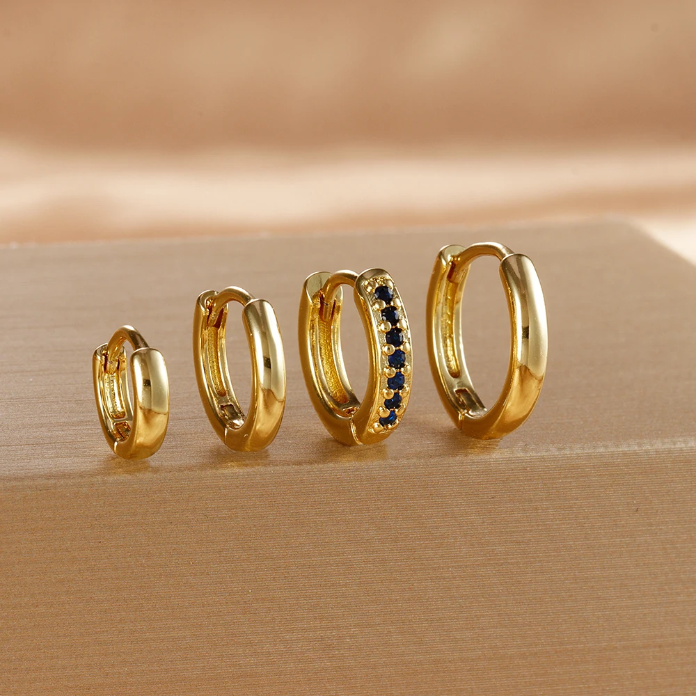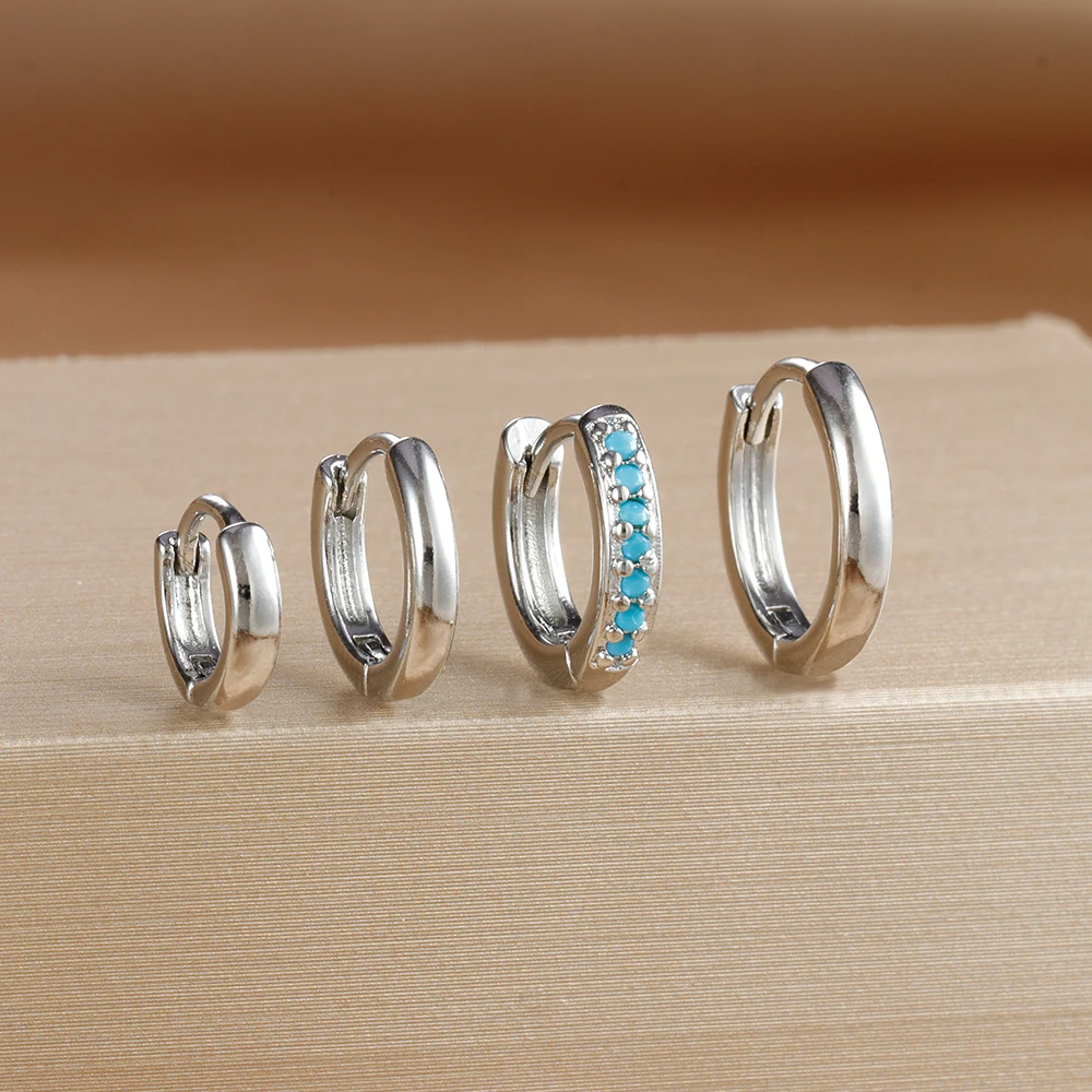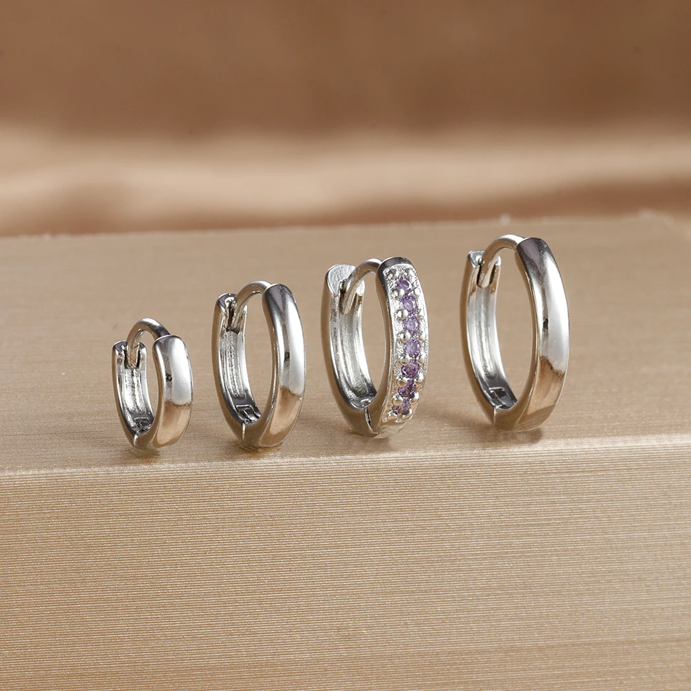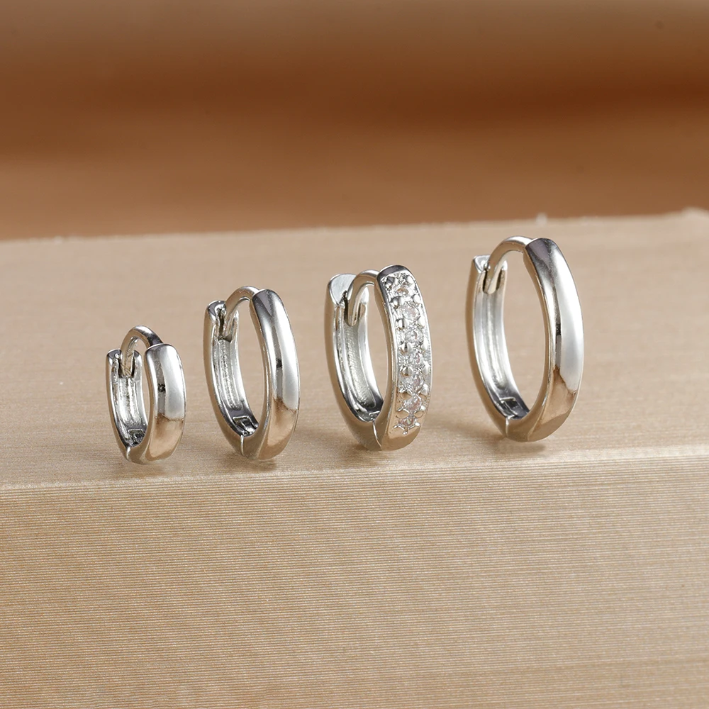 4PCS Set Stainless Steel Huggie Minimal Hoop Earrings 6/8/10mm Crystal Zirconia Helix Tragus Cartilage Earrings Piercing Jewelry