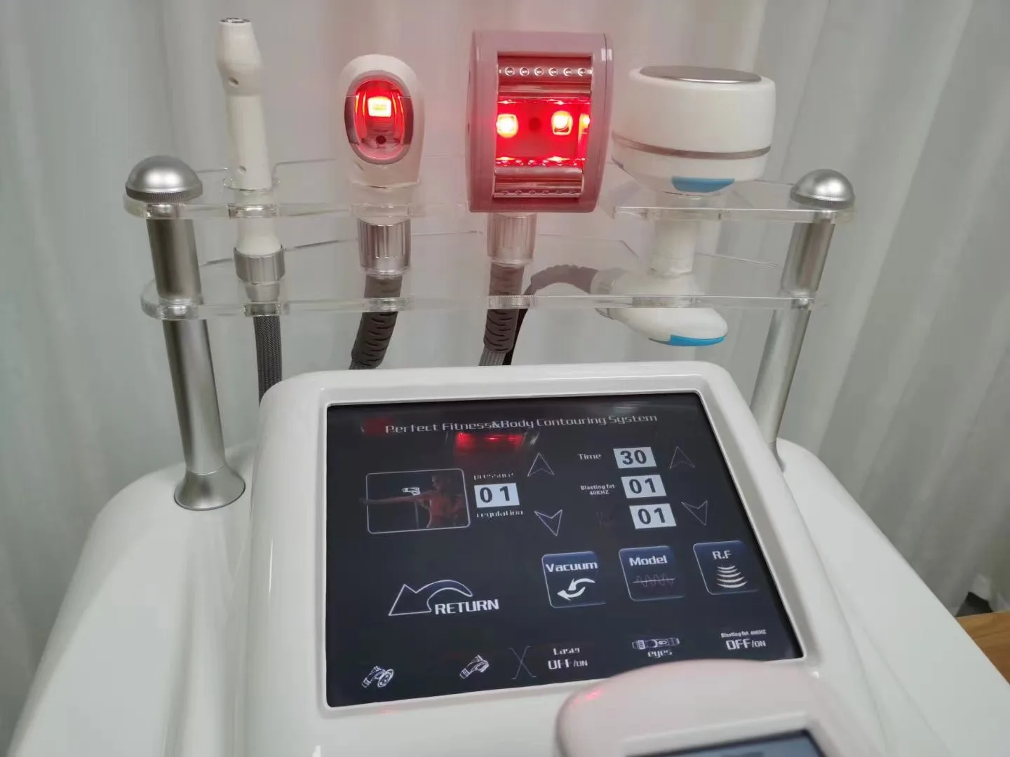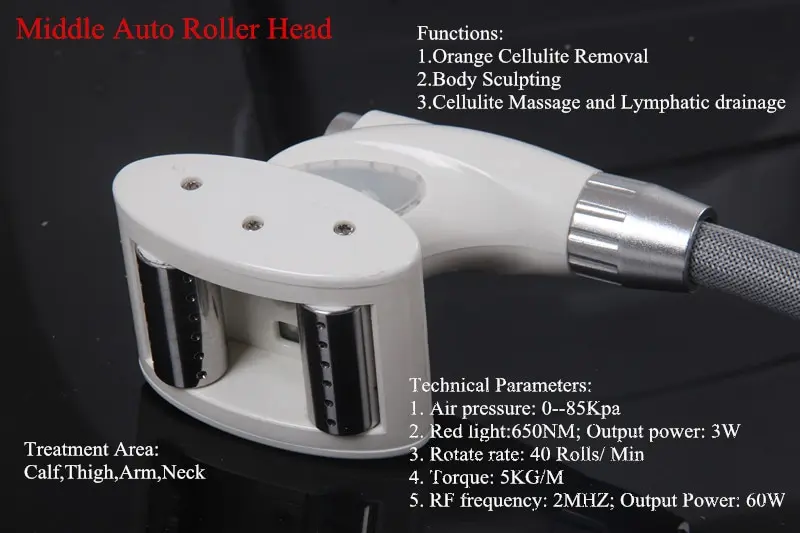 The device uses RF and a combination of three photonic wavelengths (red, green, and blue) to generate heat, which penetrates the skin up to a depth of 15mm. This depth of penetration is significantly greater than that of other devices currently on the market. The mechanical movement of the vacuum roller is synchronized with the heat generation, which helps to break down fat cells while improving skin flexibility.