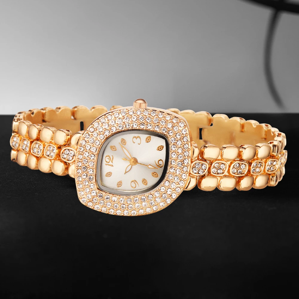 5PCS Fashion Women Watch Set Luxury Trendy Leaf Element Quartz Watch Necklace Earrings Set Suitable for Daily Clothing Matching