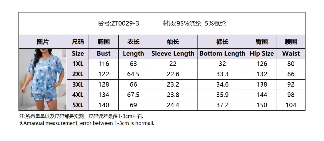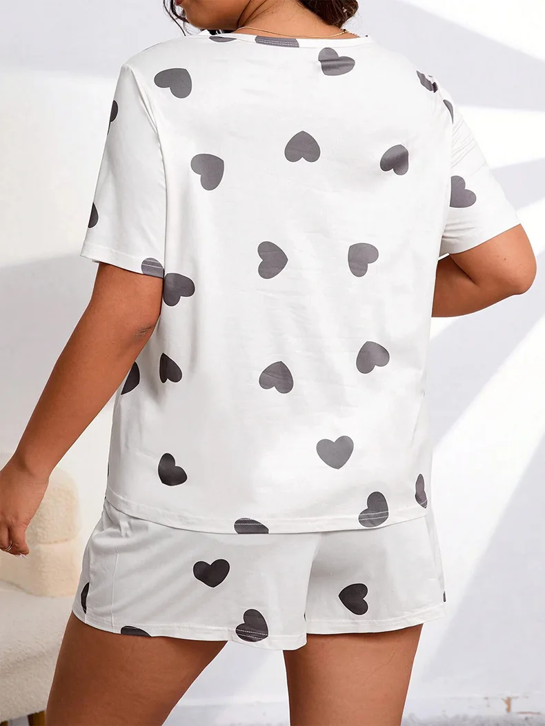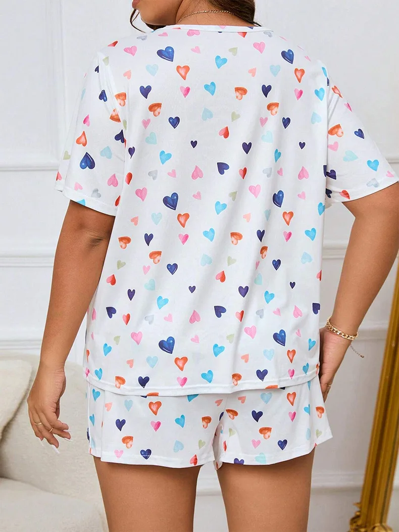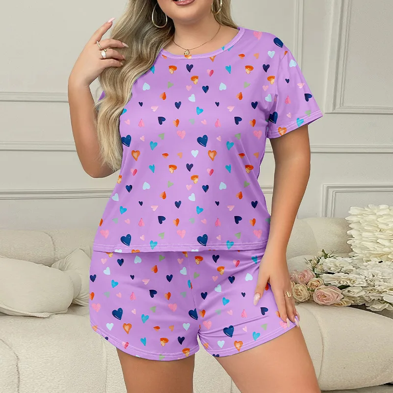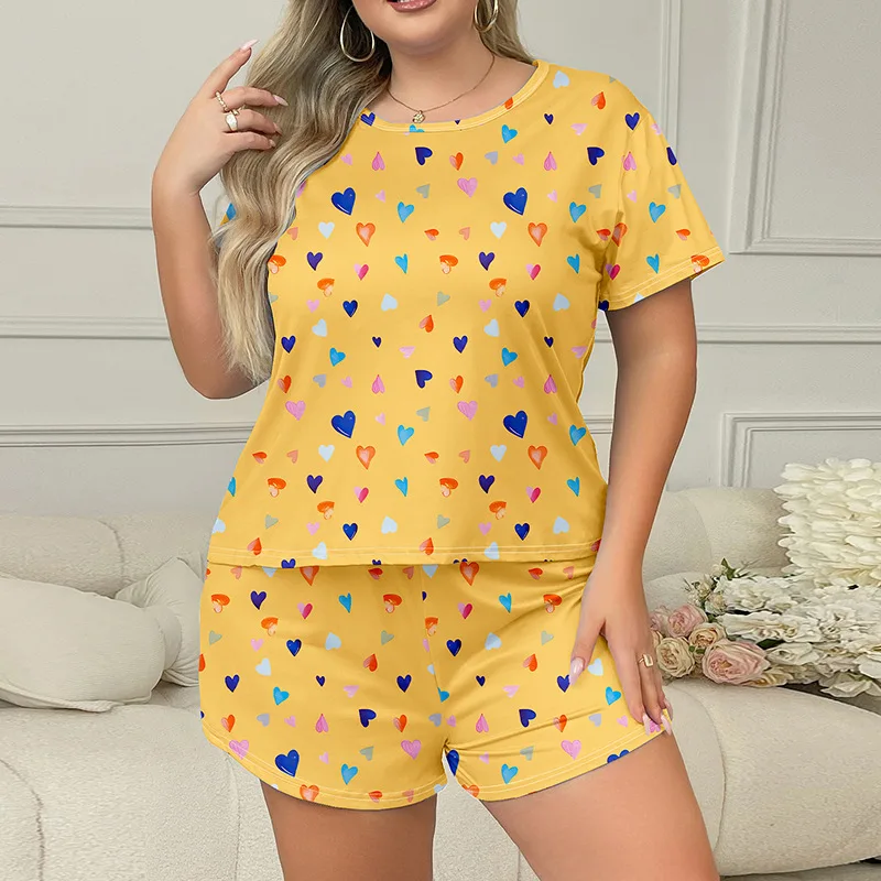 5XL Plus Size Women Pajama Set Print Sleepwear Short Sleeve Top with Shorts Summer Comfy Sleepwear 2 Pieces Loose Home Clothes