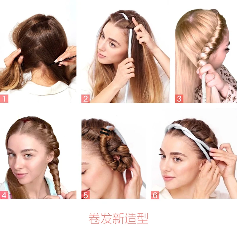 6Pcs/Set 35cm Long Soft Fabric Satin No Heat Hair Rollers Curling Rod Scarf Soft Sleeping Lazy Curls Flexi Rods Styling Tool