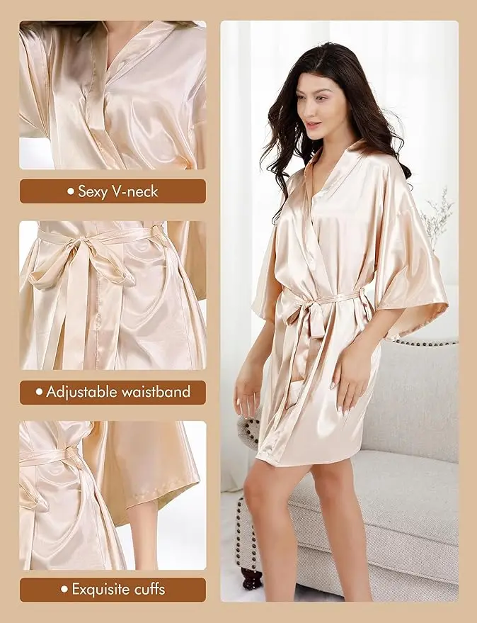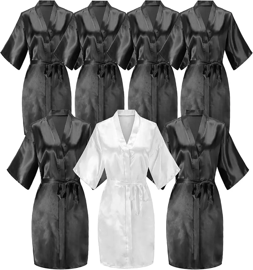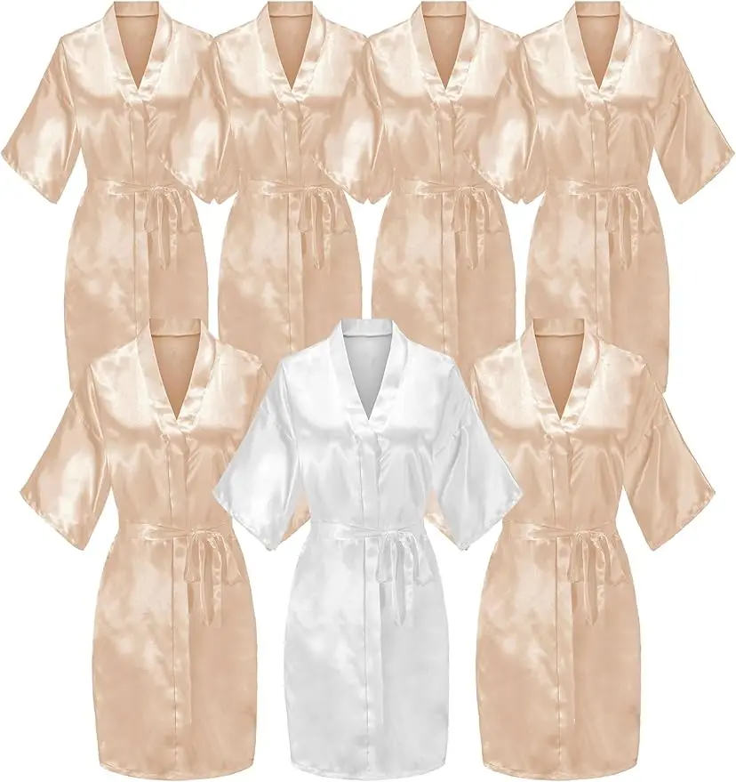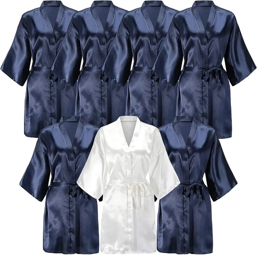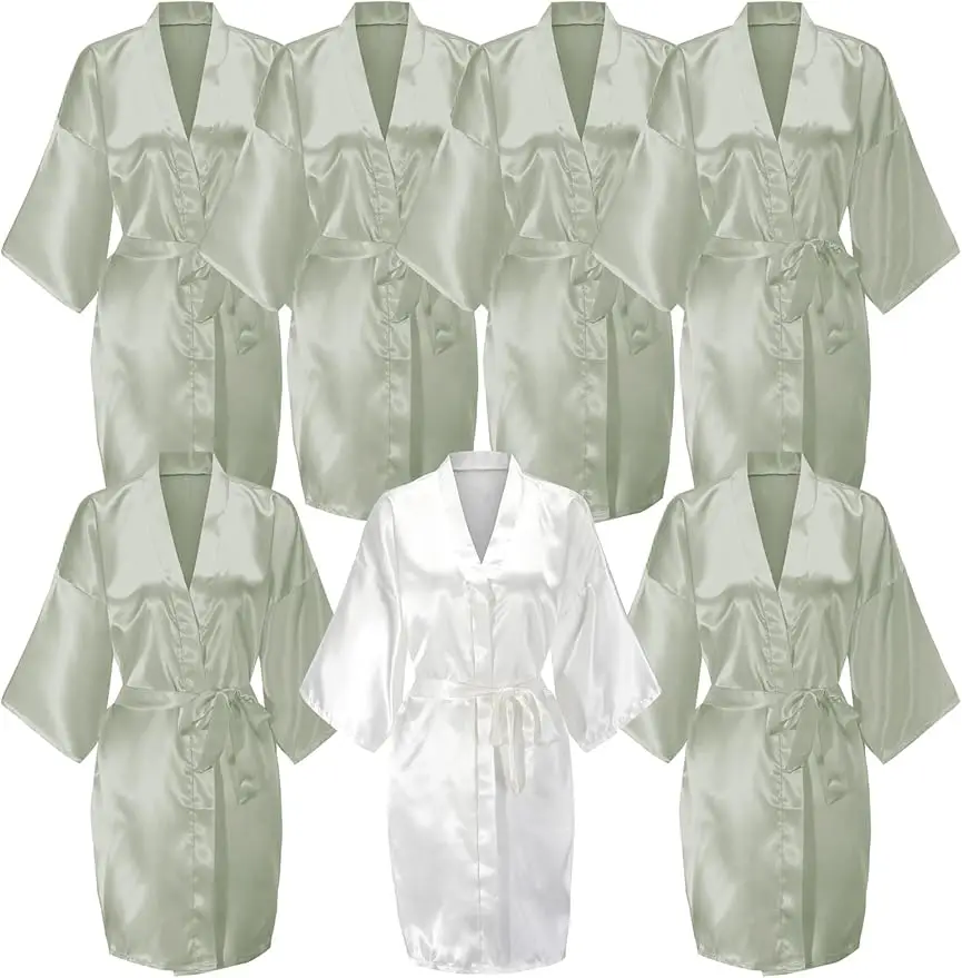 7 Pcs Women Silky Satin Robe Wedding Bridal Party Bride Bridesmaid Robes Kimono Loungewear Dressing Gowns