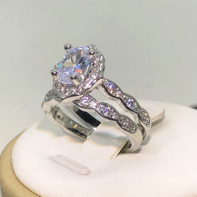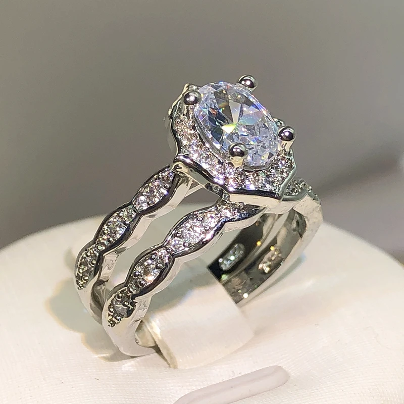 925 Silver New Arrival Four Claw Round Zircon Double Rings For Ladies Party Birthday Jewelry Gift
