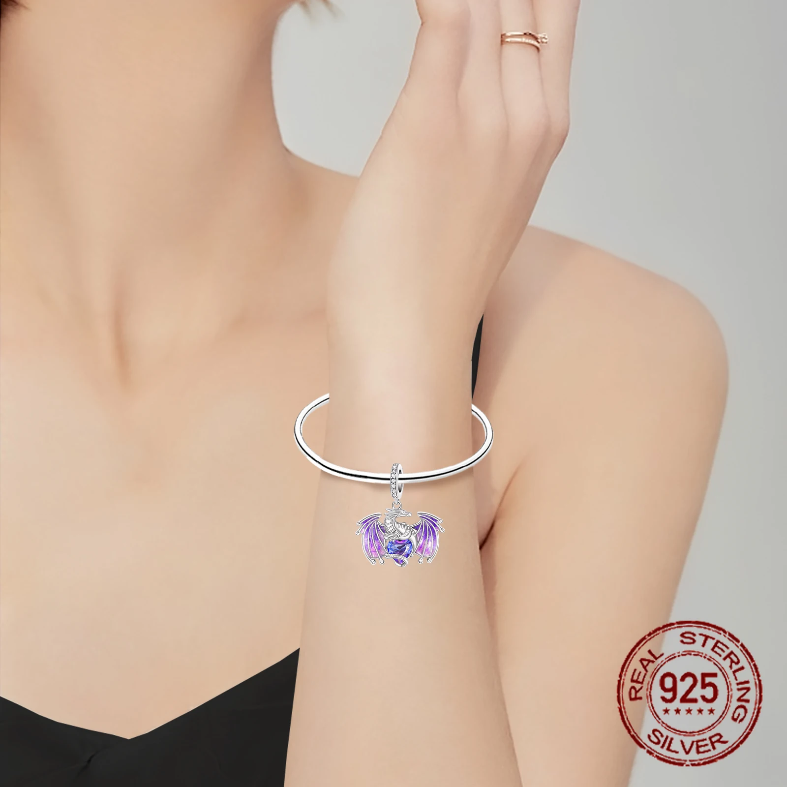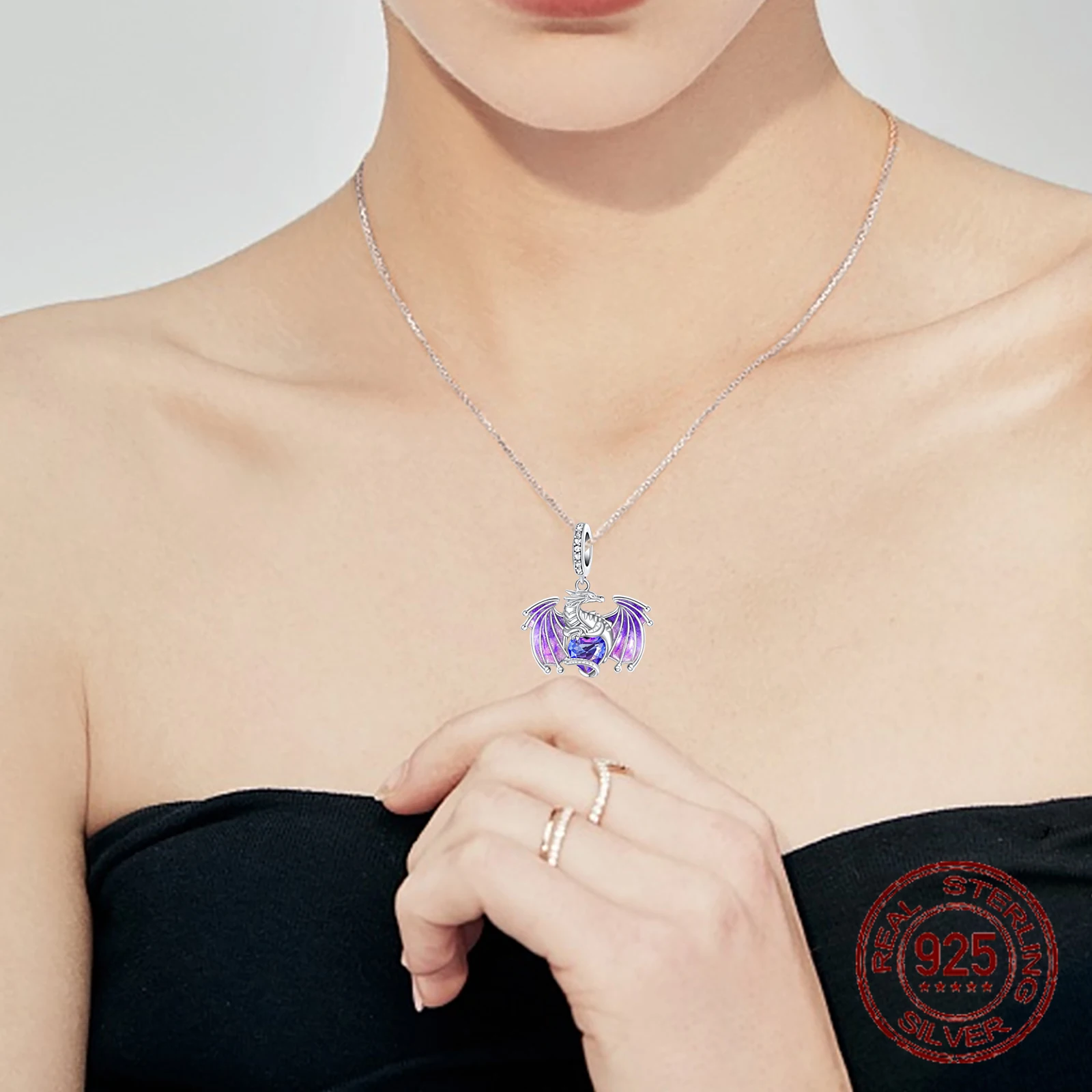 925 Sterling Silver Purple Dragon Flying Dragon Pendant Charm Fit Original Charms Bracelets Women DIY Jewelry Gift