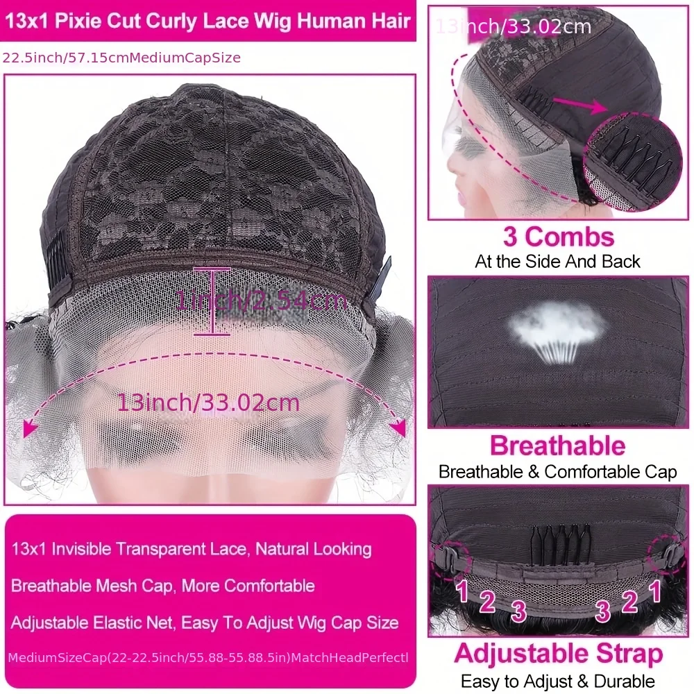 99J Short Curly Lace Front Human Hair Wigs 13X1 Pixie Cut Short Curly Human Hair Wigs Red Water Wave Wigs For Women Human Hair