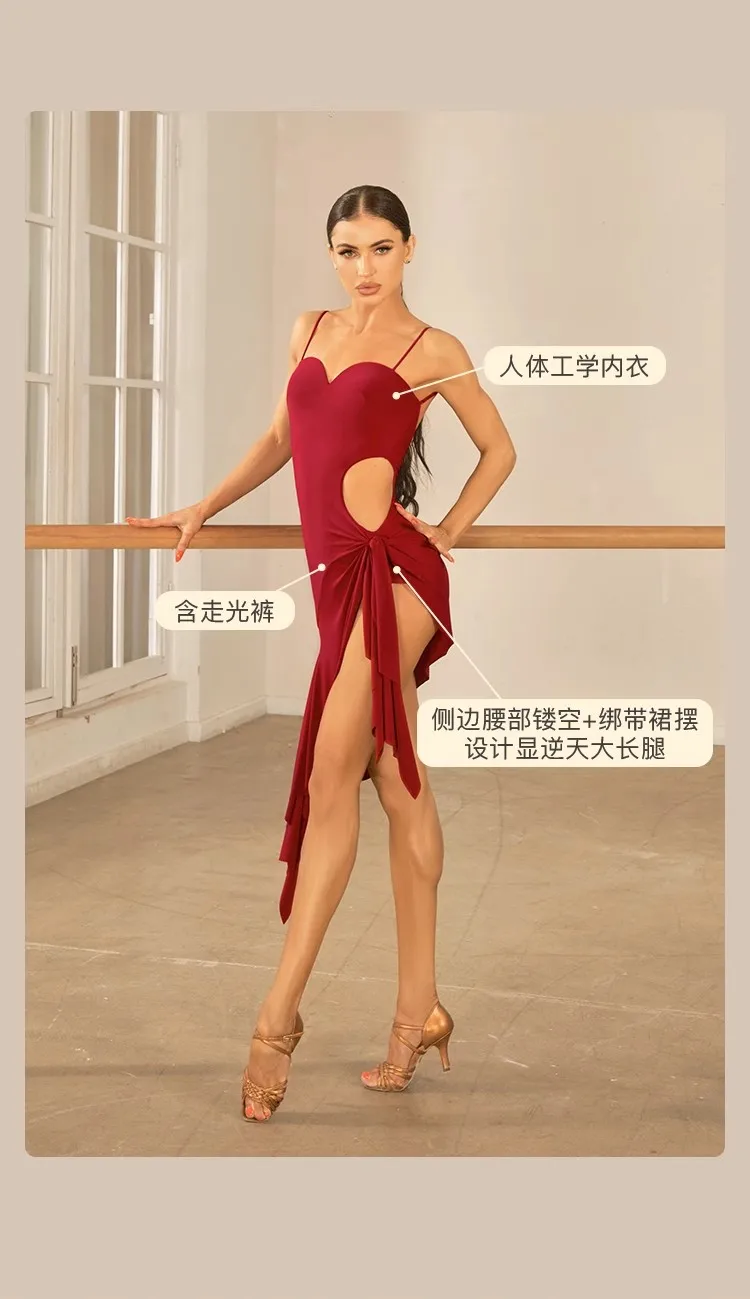 Adult LatinDance Performance DressWomen's Sexy Outdoor Banquet Hall PartyTassel Dress Sports PracticeWearingRed BallEveningDress