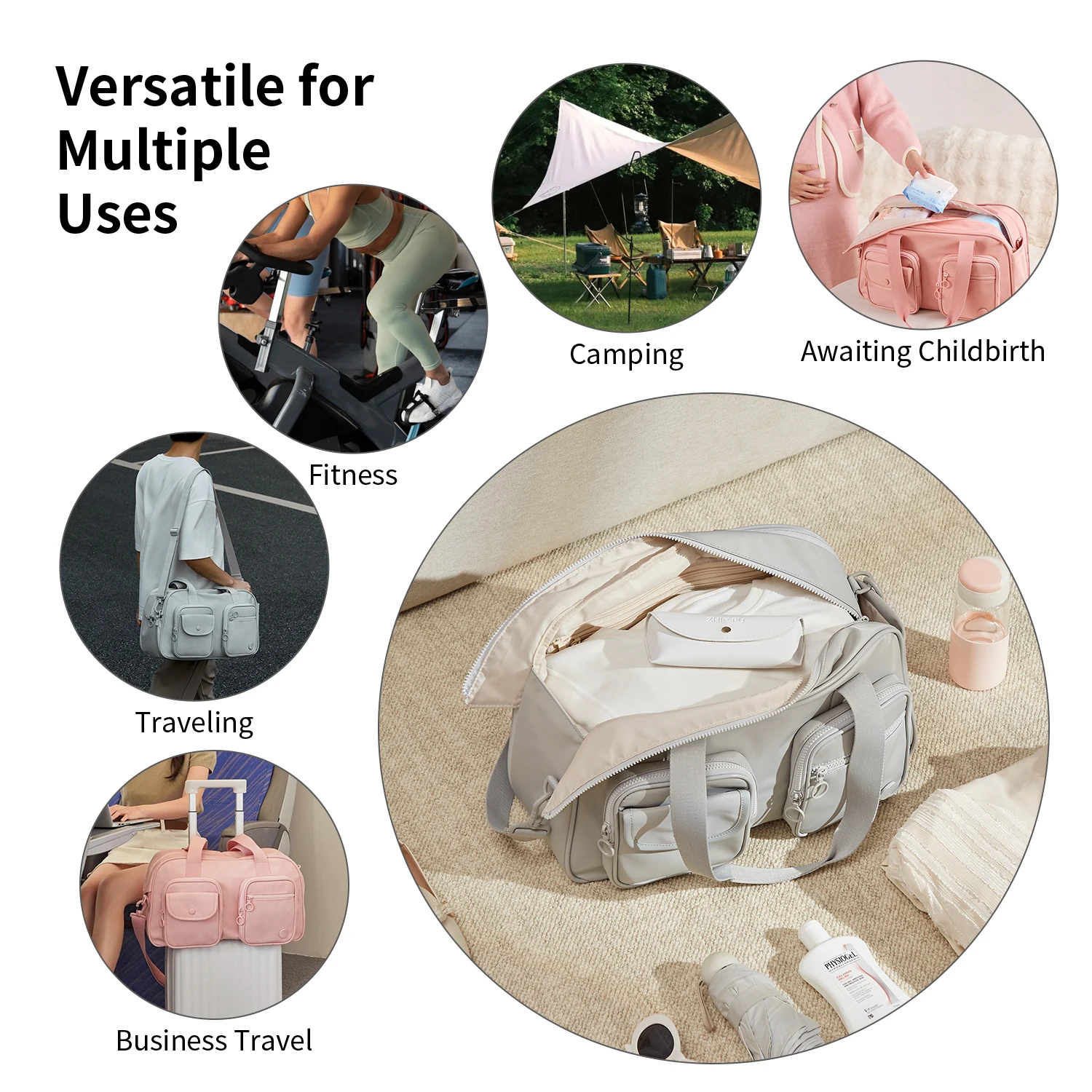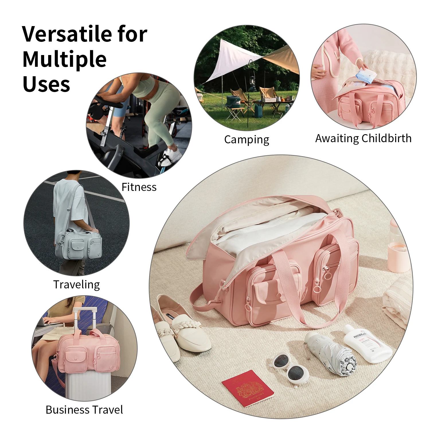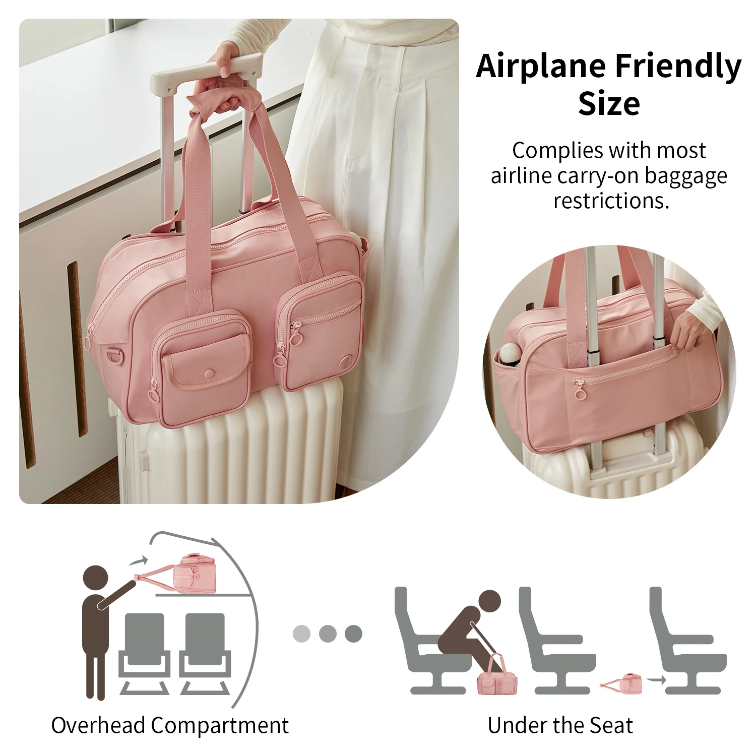 AJI Women Travel Bag Nylon Handheld Travel Bag Carry On Luggage Bag Large Capacity Weekender Gym Sport Holdall Overnight Bag
