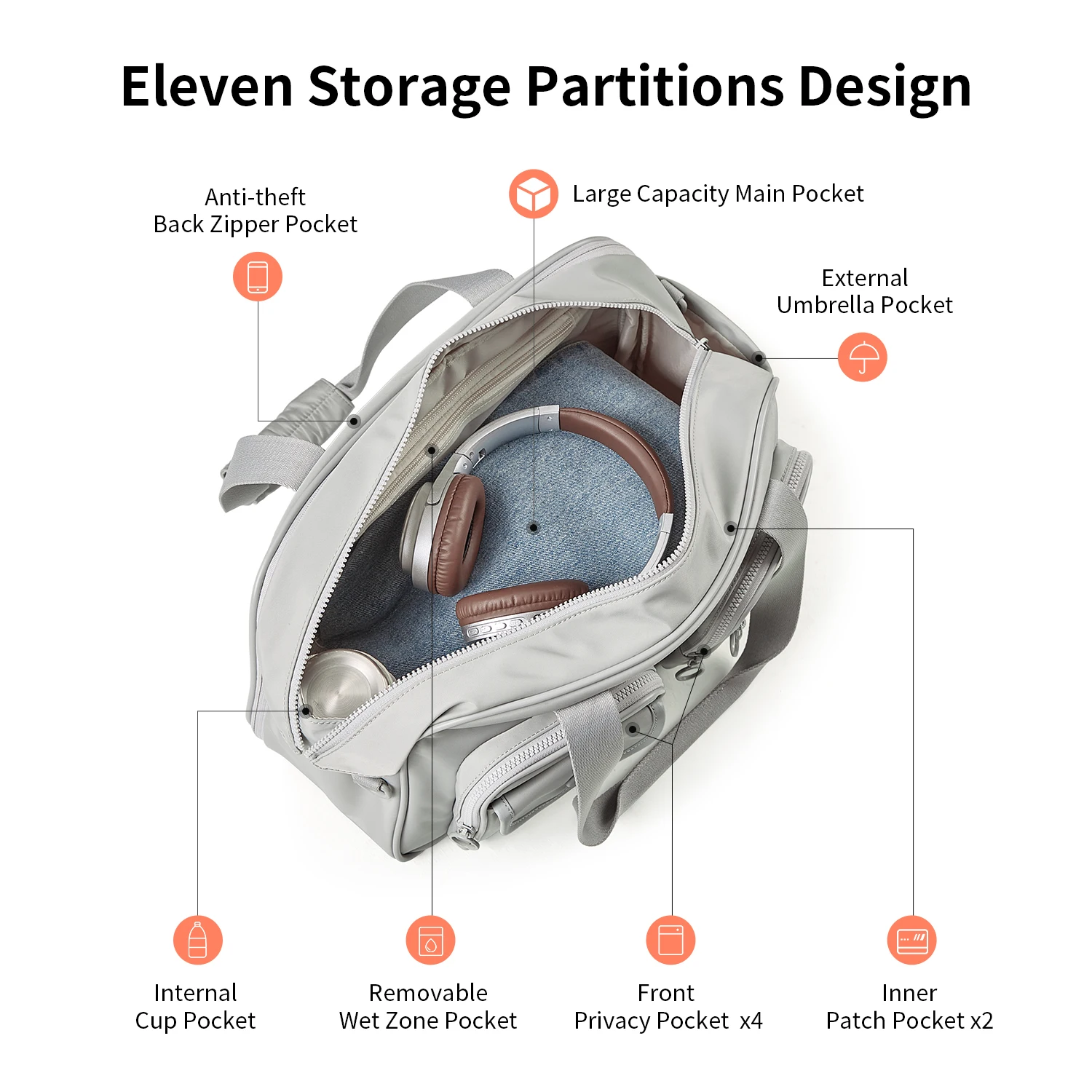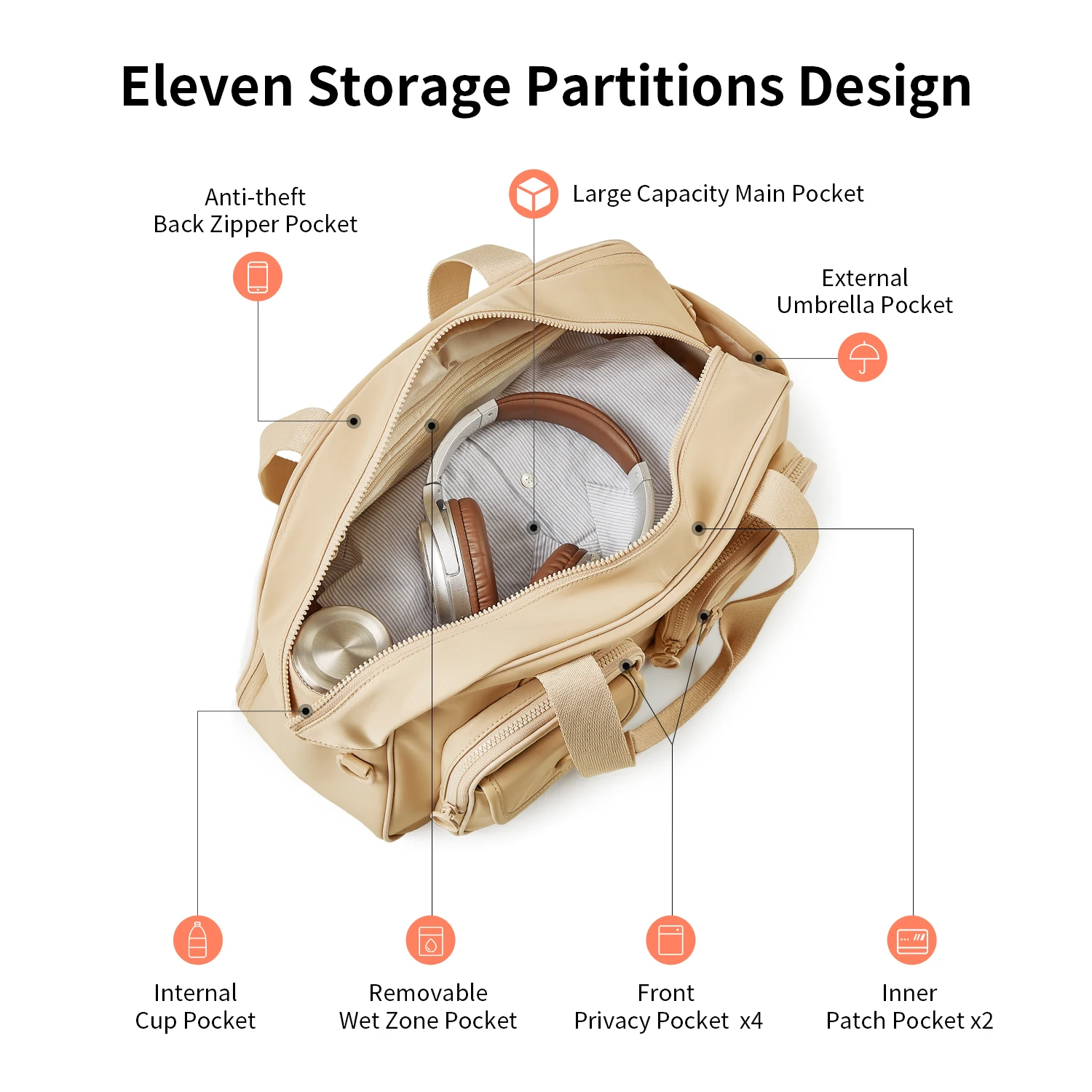 Interior: Back zipper pocket ;External umbrella pocket ;Internal cup pocket;Removable wet zone pocket ;Expansion layer ;Inner patch pocket