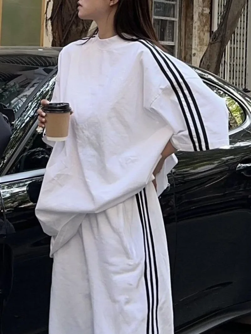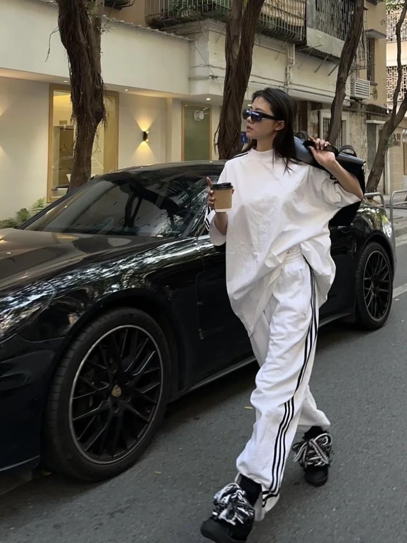 American Street-bombing Leisure Sportswear Suit Female Summer Student Loose Versatile Short-sleeved Trousers Two-piece Suit Tide