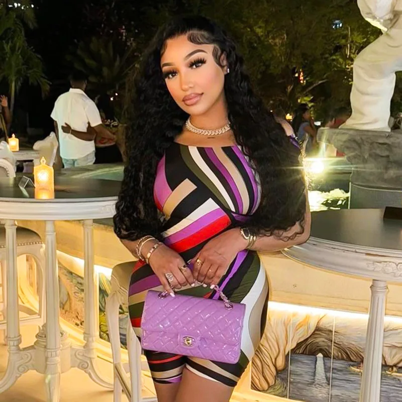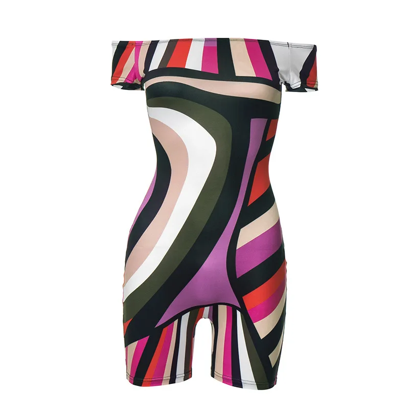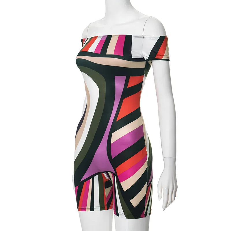 ANJAMANOR Multicolor Printed Off Shoulder Short Jumpsuits for Women 2024 Sexy Club Outfit Ladies Rompers Summer Clothes D85-BZ14