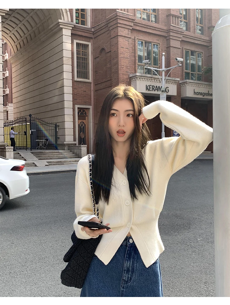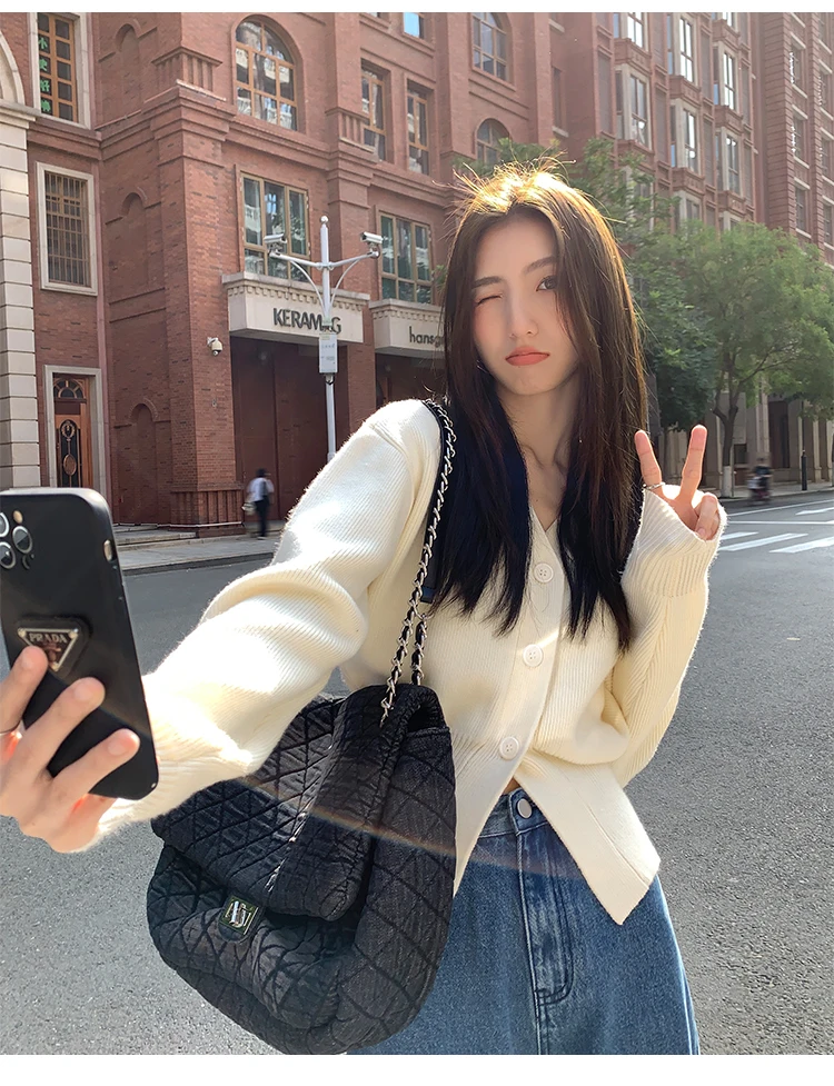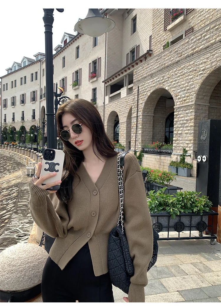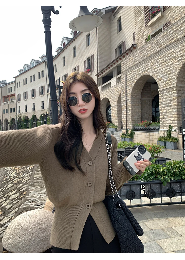 AOSSVIAO Knitted Casual Cardigan 2025 Autumn Winter Elegance Solid Color V-neck Sweater Unique and Niche Slim Fit Tops