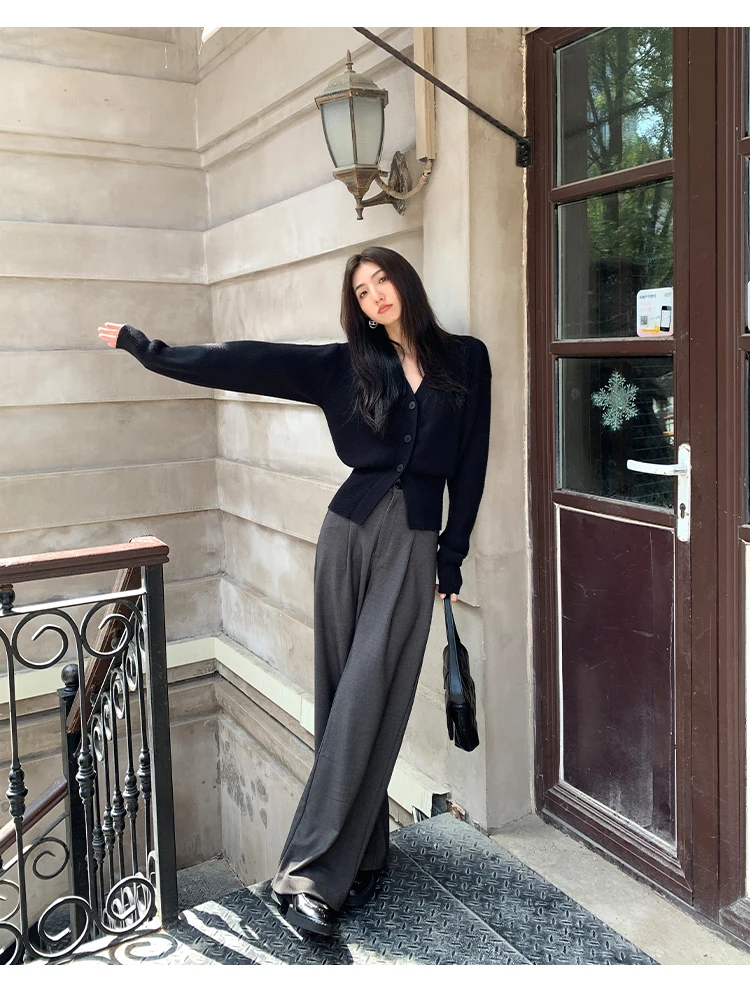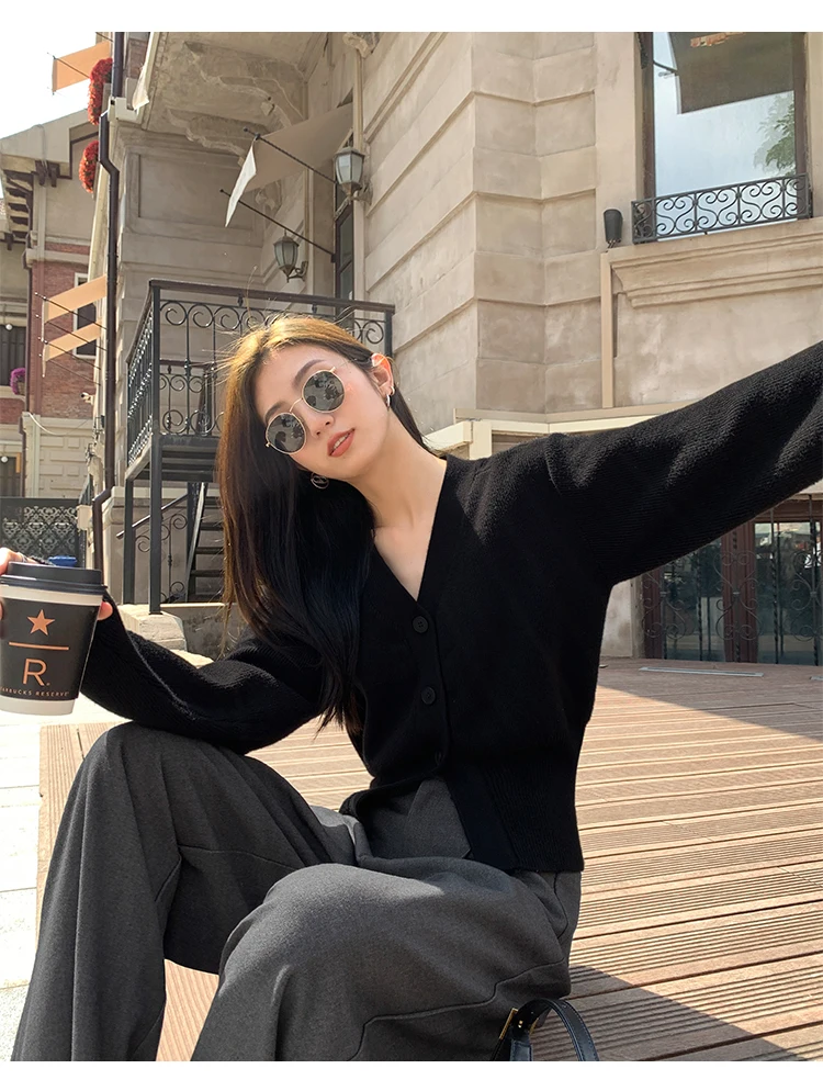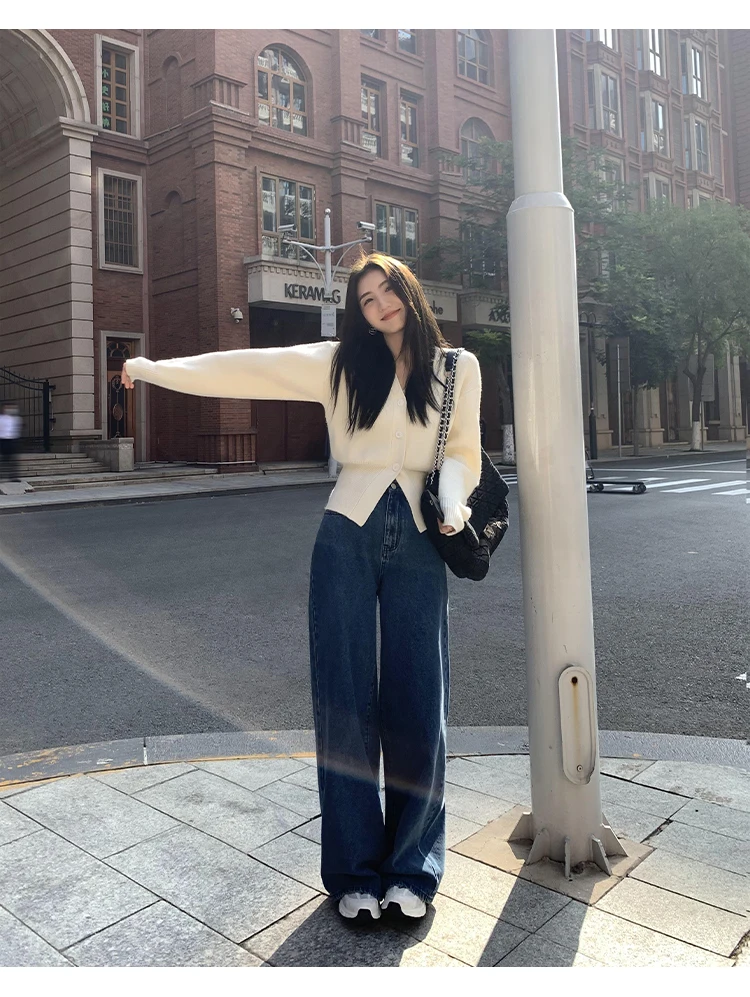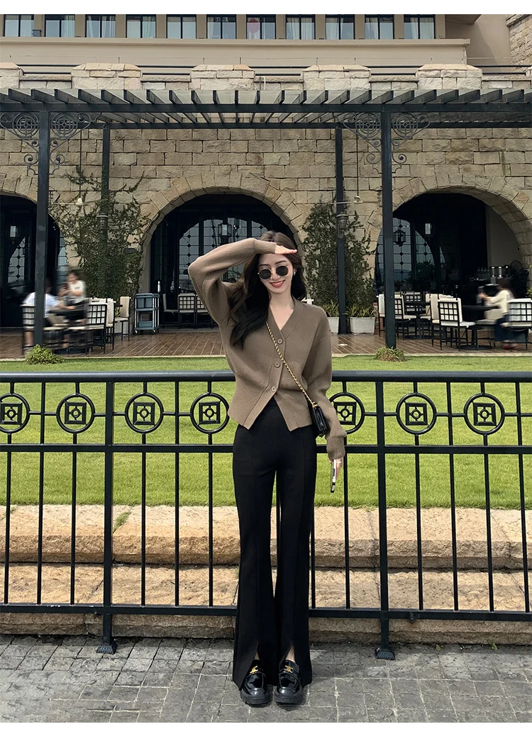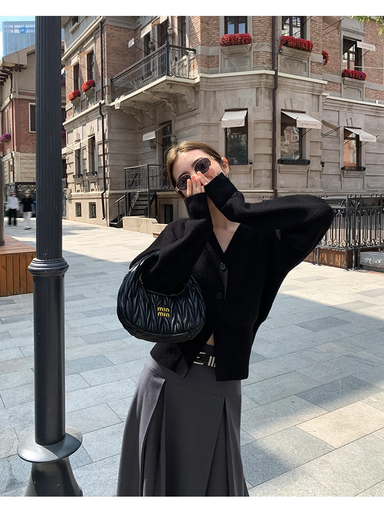 AOSSVIAO Knitted Casual Cardigan 2025 Autumn Winter Elegance Solid Color V-neck Sweater Unique and Niche Slim Fit Tops
