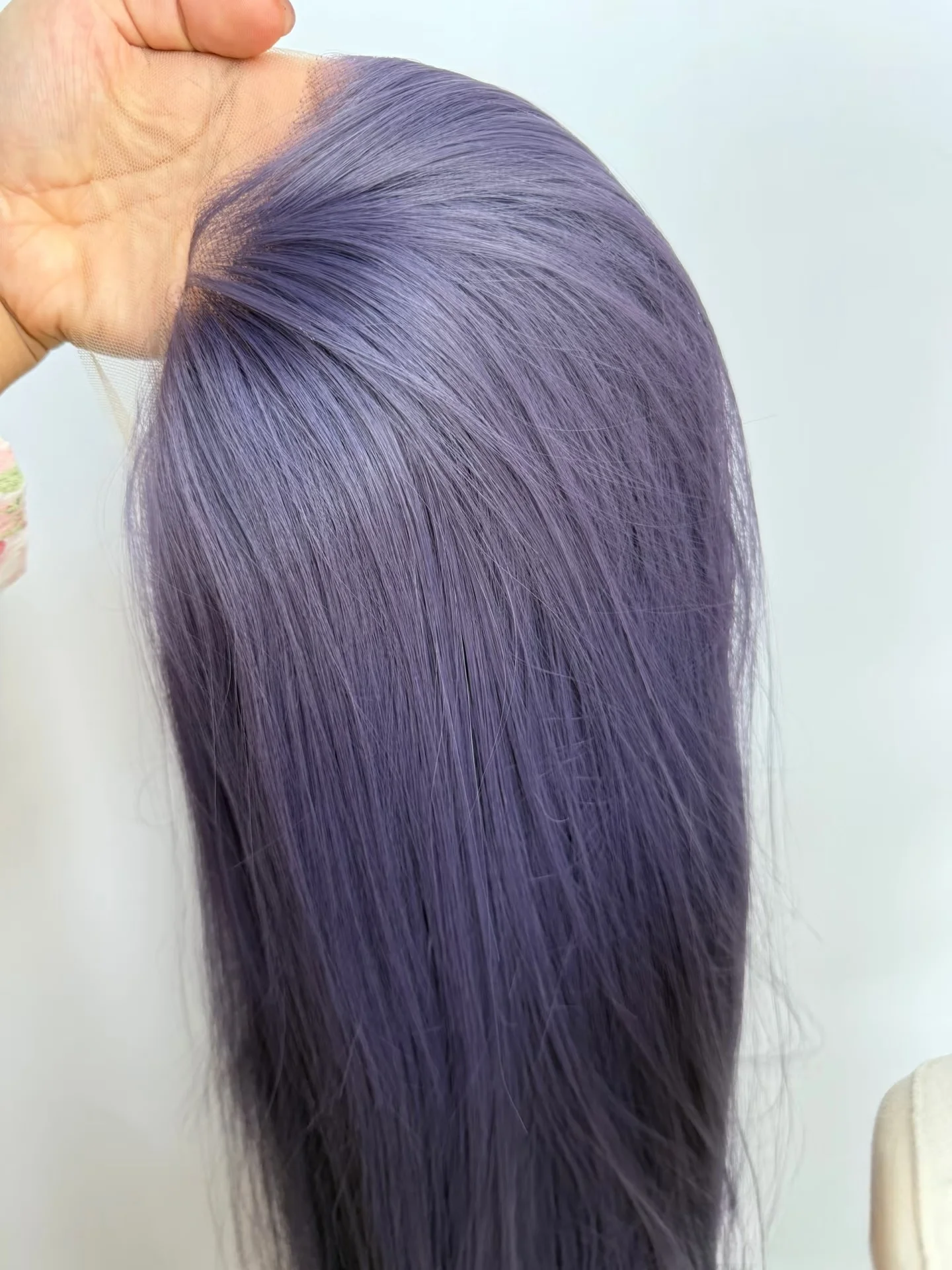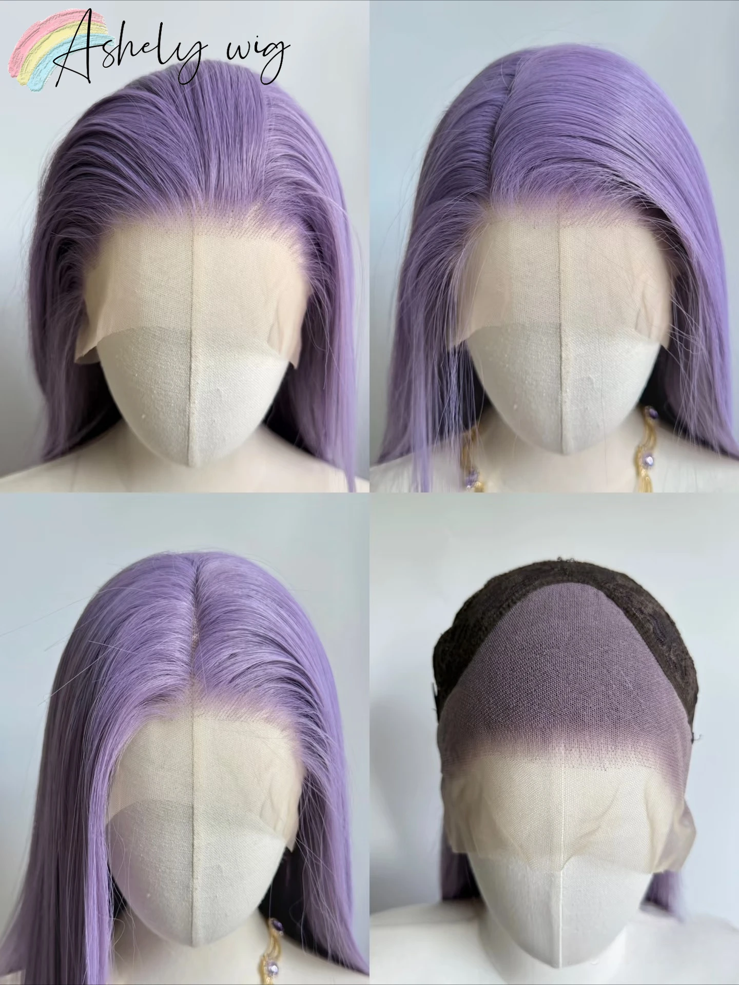 Ashely Light Purple Wig Special Grey-purple Lace Front Wigs 26inch long straight 13*4 Synthetic Lace Wigs for Cosplay Daily Use