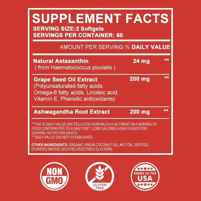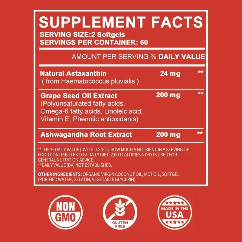 Astaxanthin 24mg - with Ashwagandha, Grape Seed Oil Extract - for Joint, Brain, Immune and Heart Support Diet