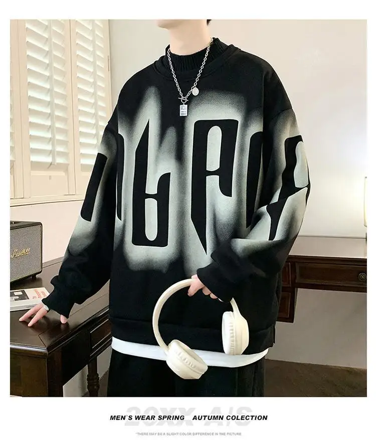 Autumn Winter Long Sleeve Print Letter Casual Hoodies Sweatshirts Thick Fake Two Pieces Fashion Tops Korean Trend Men Clothing