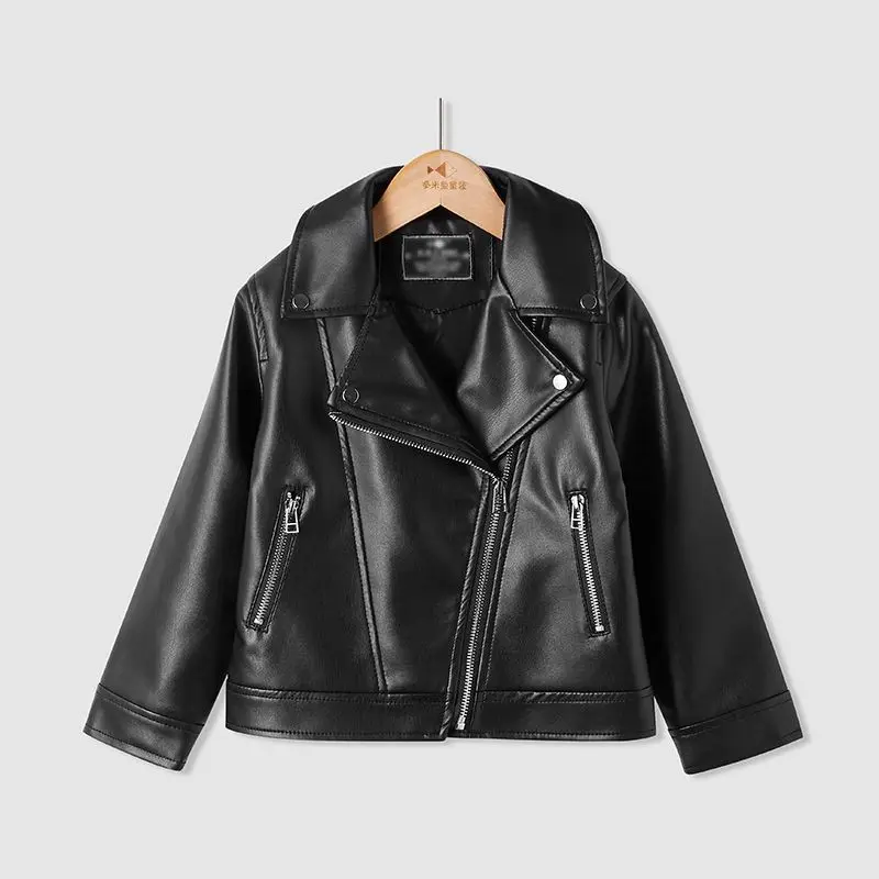 Baby Boys' Leather Jacket Spring and Autumn Children's PU Jacket Casual Motorcycle Jacket Girl Coat