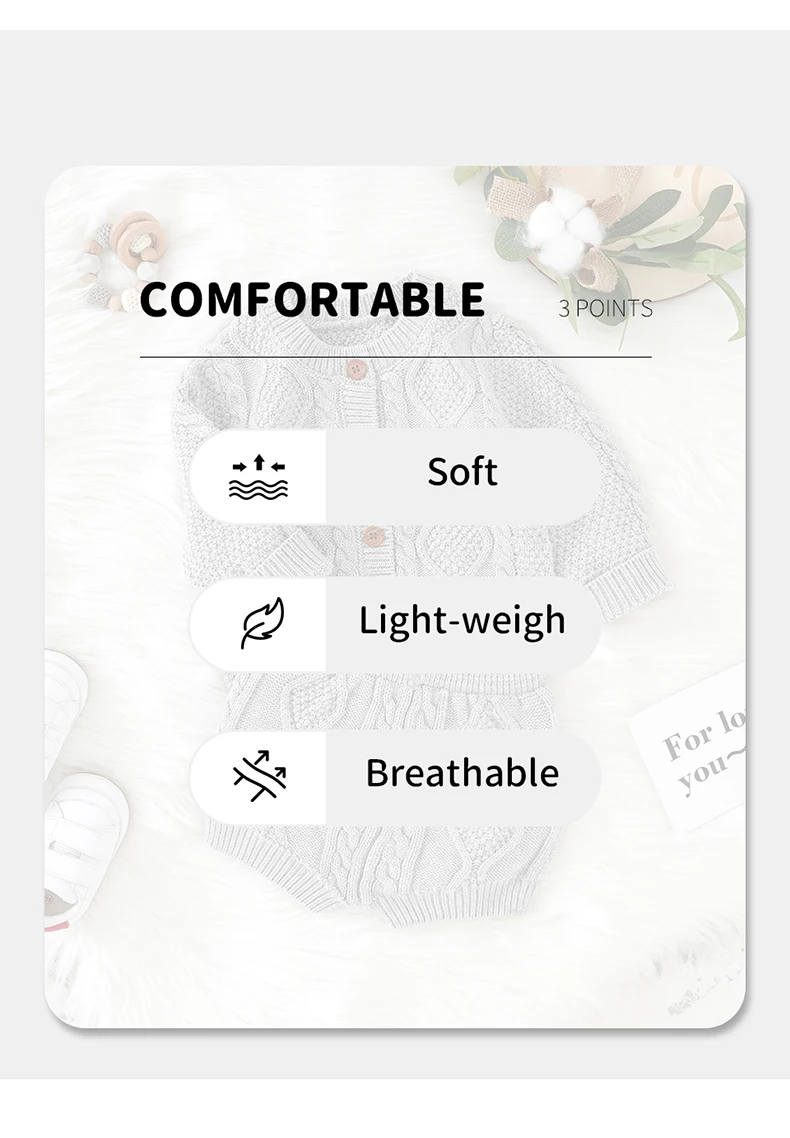 Baby Clothes Sets Cotton Knitted Newborn Boys Girl Sweater Long Sleeve +Pants Autumn Infant Children Cardigan +Shorts 0-18M 2PCS