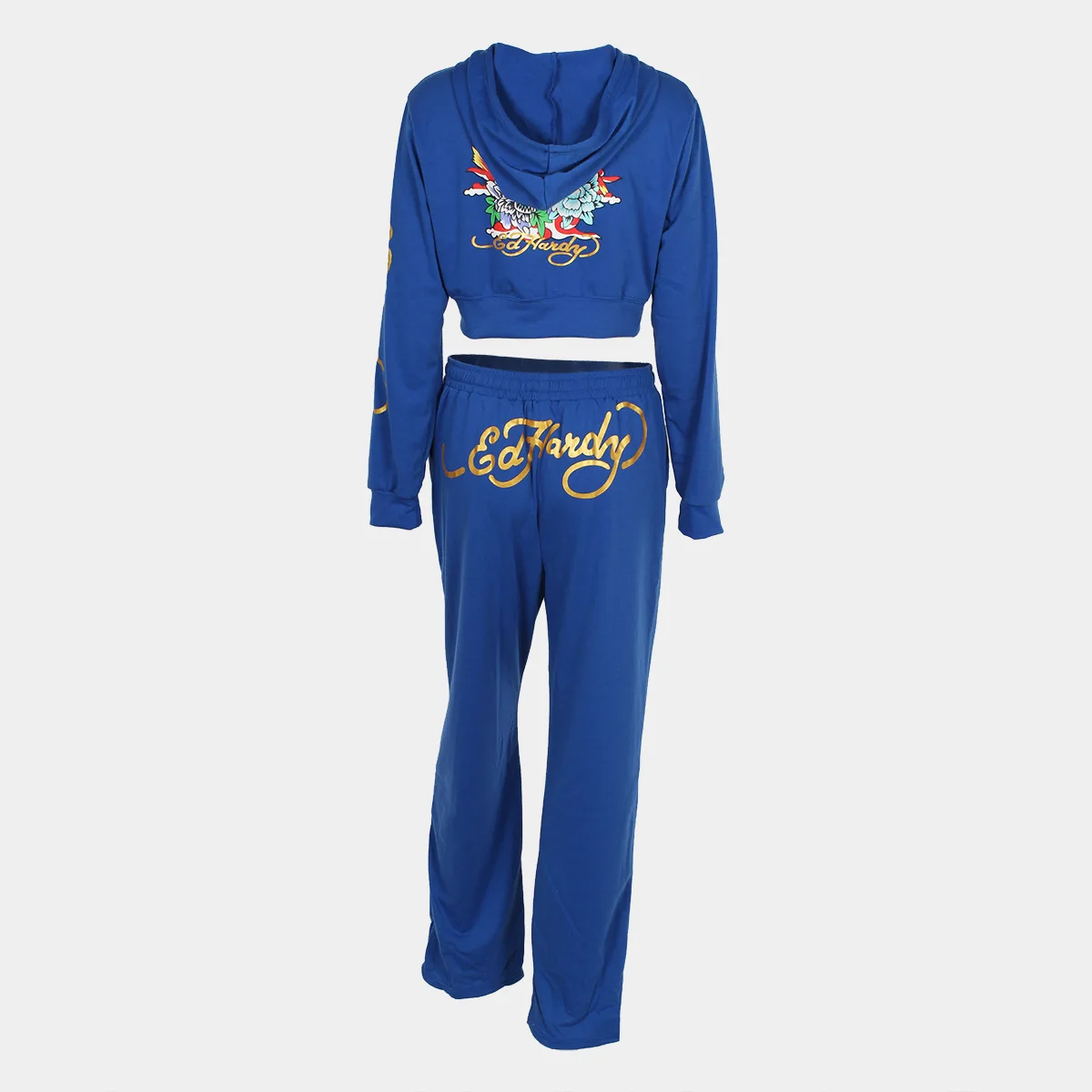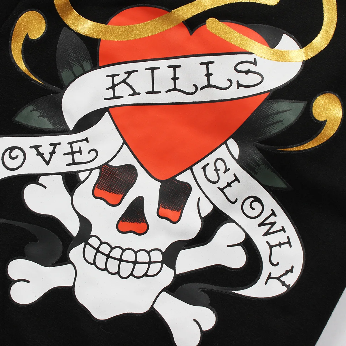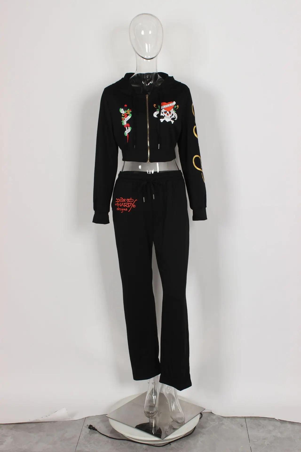 Bangniweigou Skull Love Print Zipper Short Cardigan + High Waist Straight Leg Pants Two Piece Set Women Tracksuit Autumn Winter