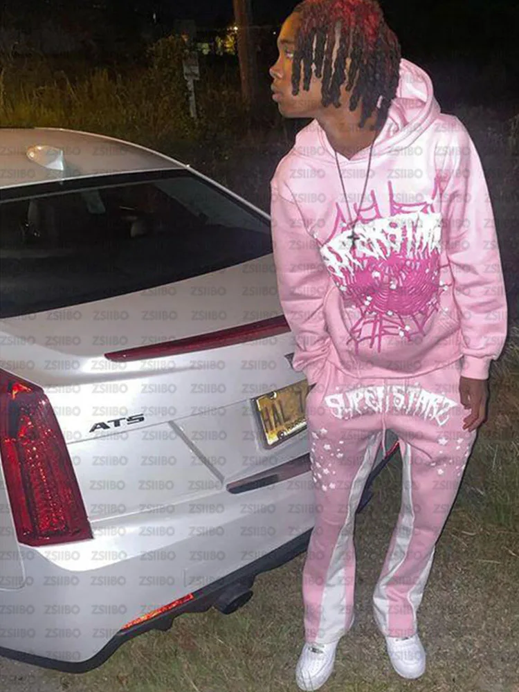 BIG PROMOTION Y2K European and American Autumn/Winter Men's Hip Hop Street Spider Web Letter Printed Loose Hooded Sweater