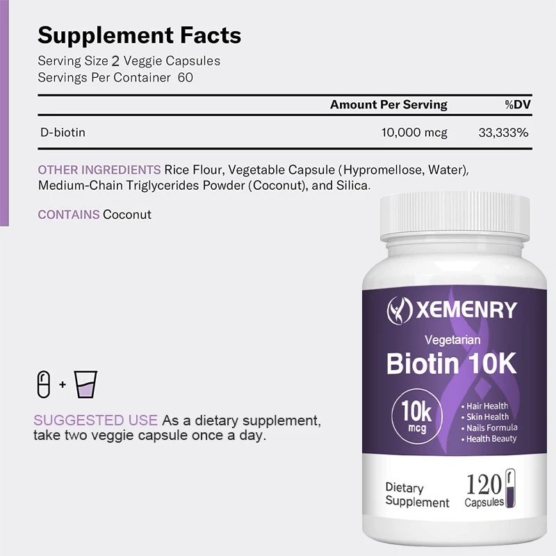 BIOTIN HEALTHY HAIR SUPPORT VITAMIN: This premium Biotin supplement contains 10,000 mcg of pure Biotin in a premium hair, skin and nails formula designed to promote strong hair, skin and nails.