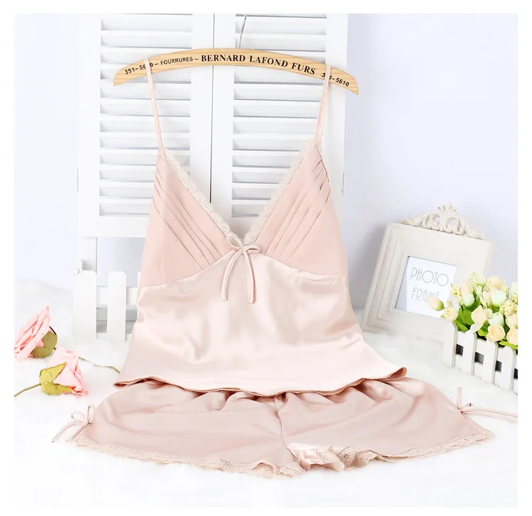 2025 Summer 2 Pcs Women's New Sexy Lace See-Through Pajamas Black Pink Cute Clothes Comfortable Breathable Suspender Shorts Set