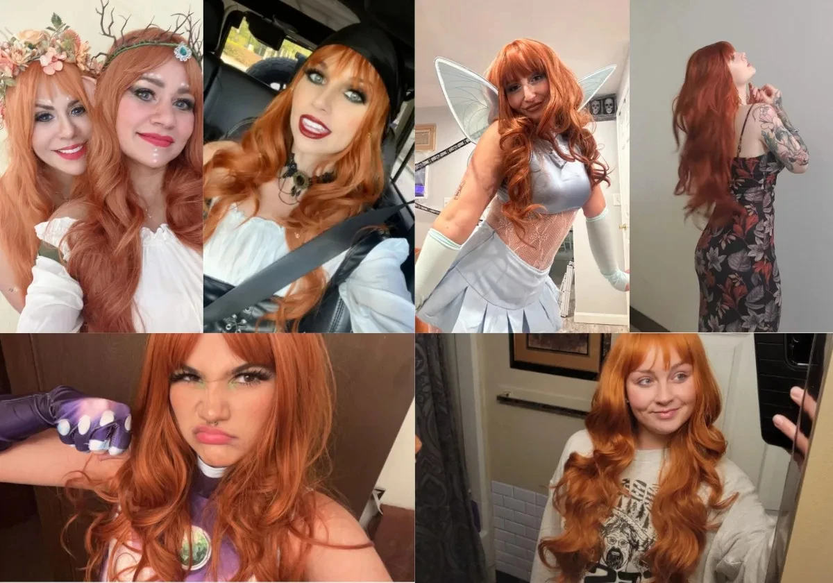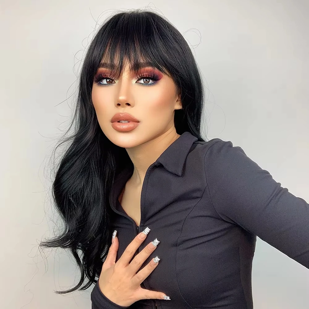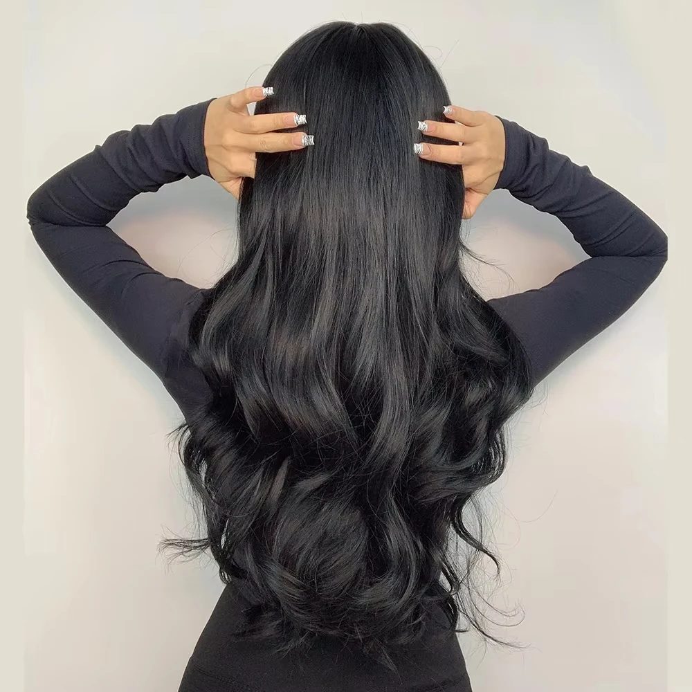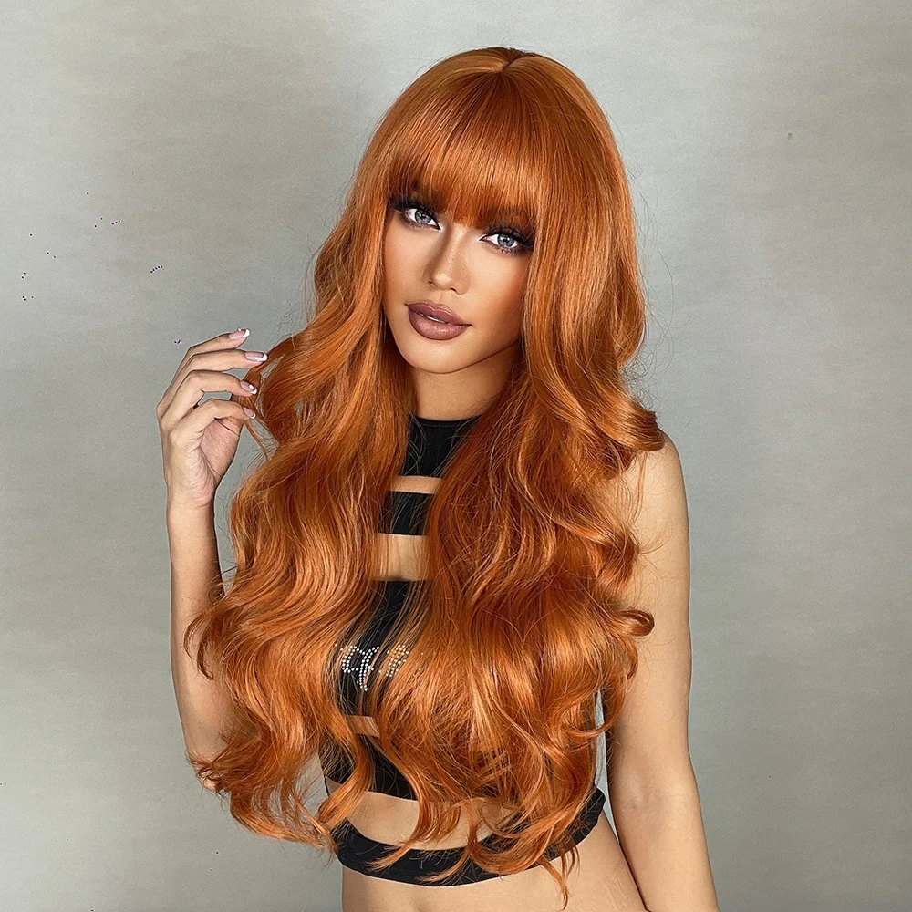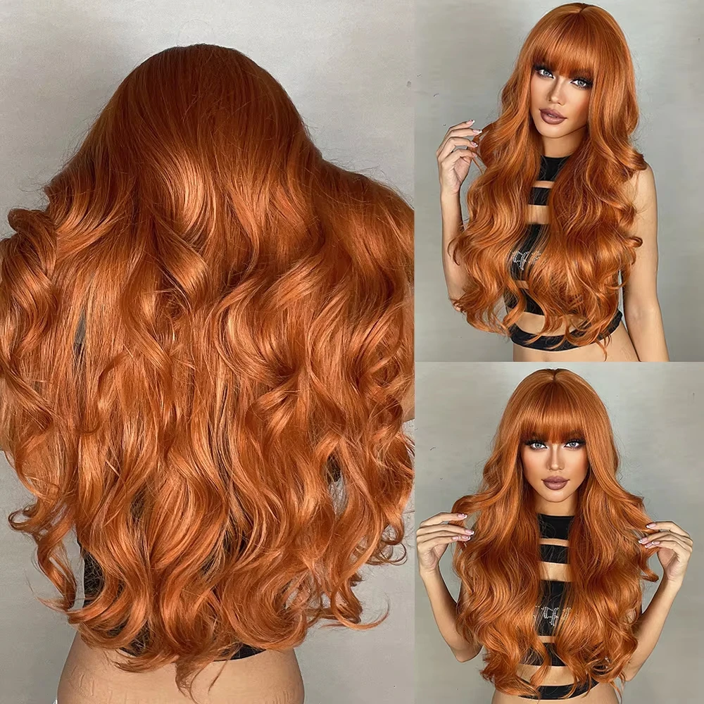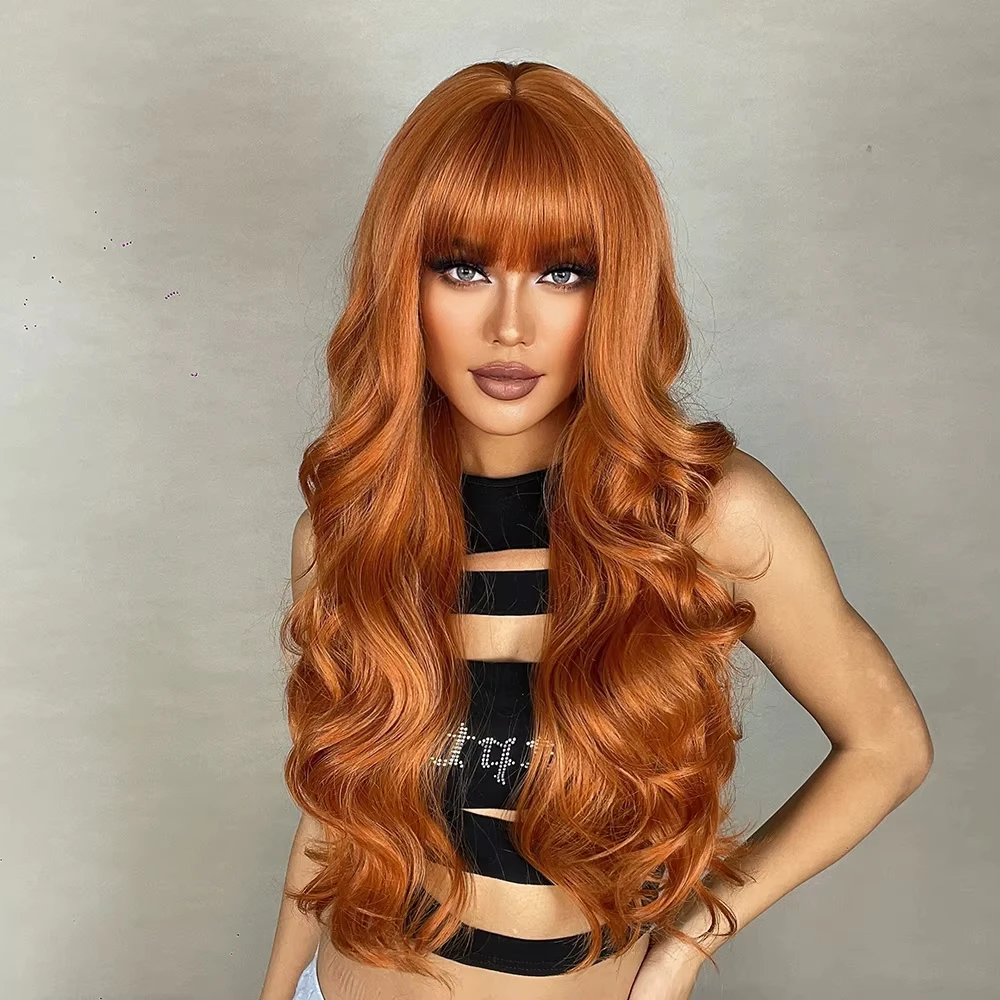 Blonde synthetic wig with straight bangs Ladies Cosplay wig High temperature silk wig set with big waves and long curly hair