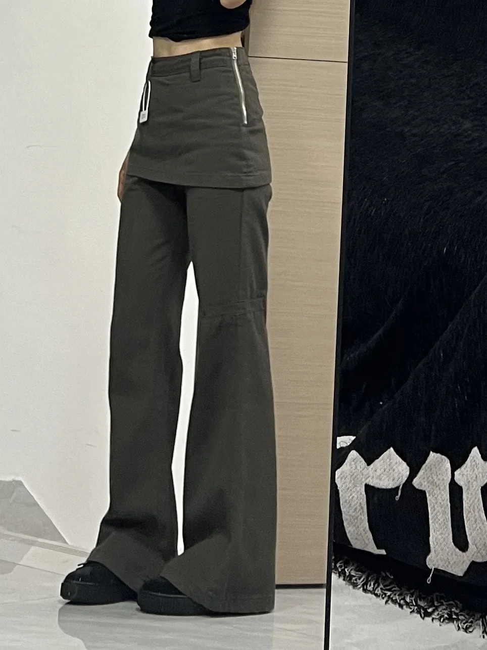 Botvotee Fake Two-Piece Plus size Wide Leg Jeans for Women 2025 New Y2k Fashion Streetwear High Waisted Flare Denim Pants
