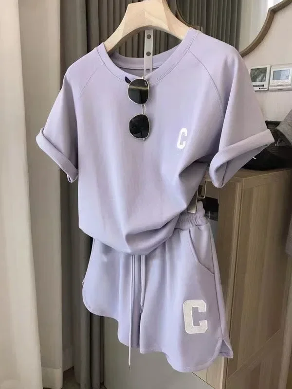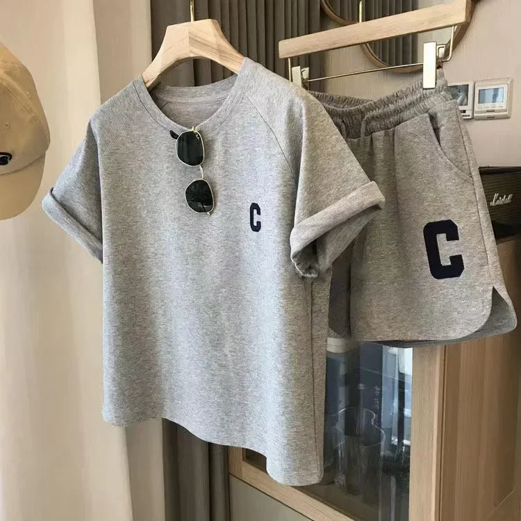 Bull Horn Sleeve Casual Sports Suit Women's Summer Thin Style Summer Running Fashion Western-Style Short Sleeved Shorts Pajamas