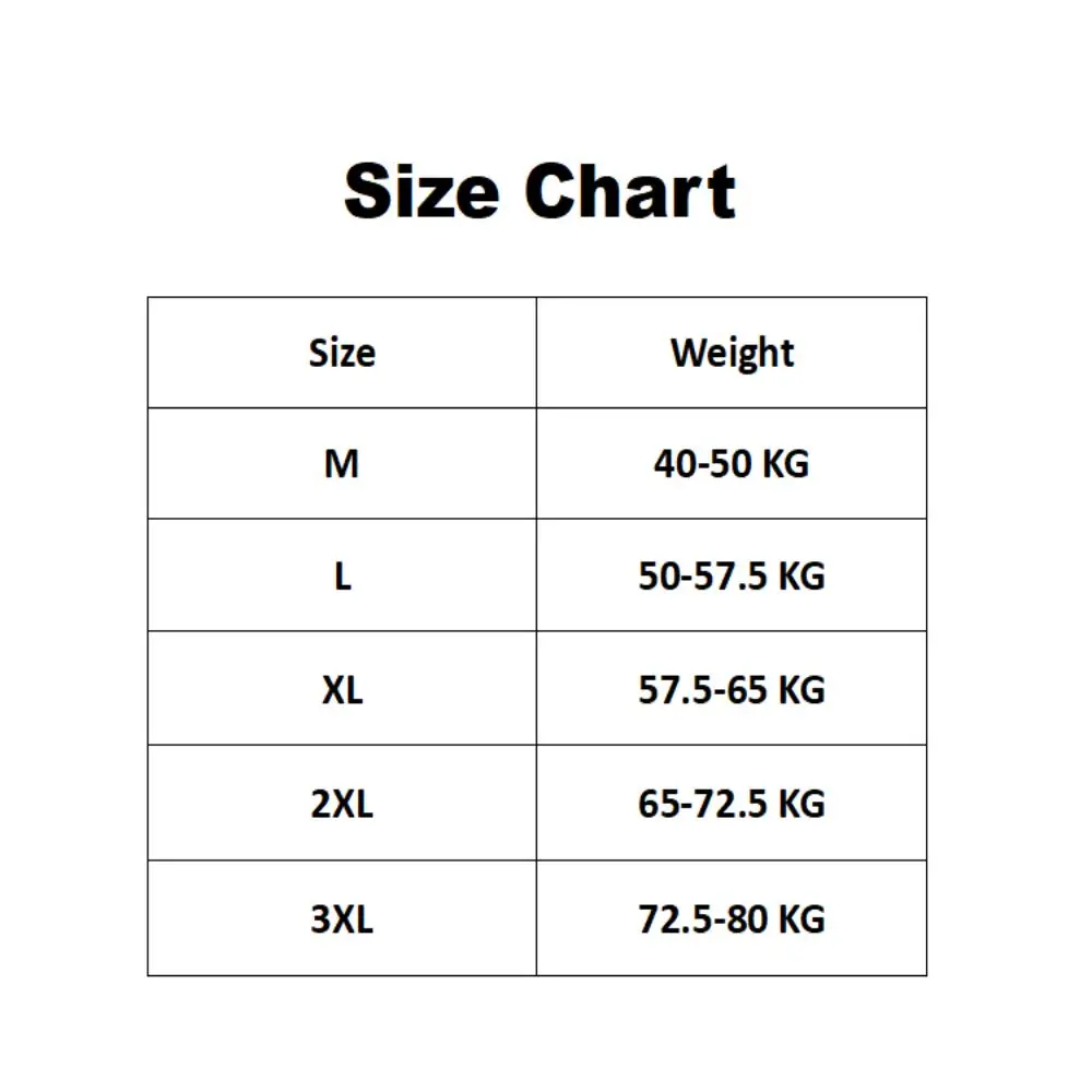Size 2XL:Weight: 65-72.5kg