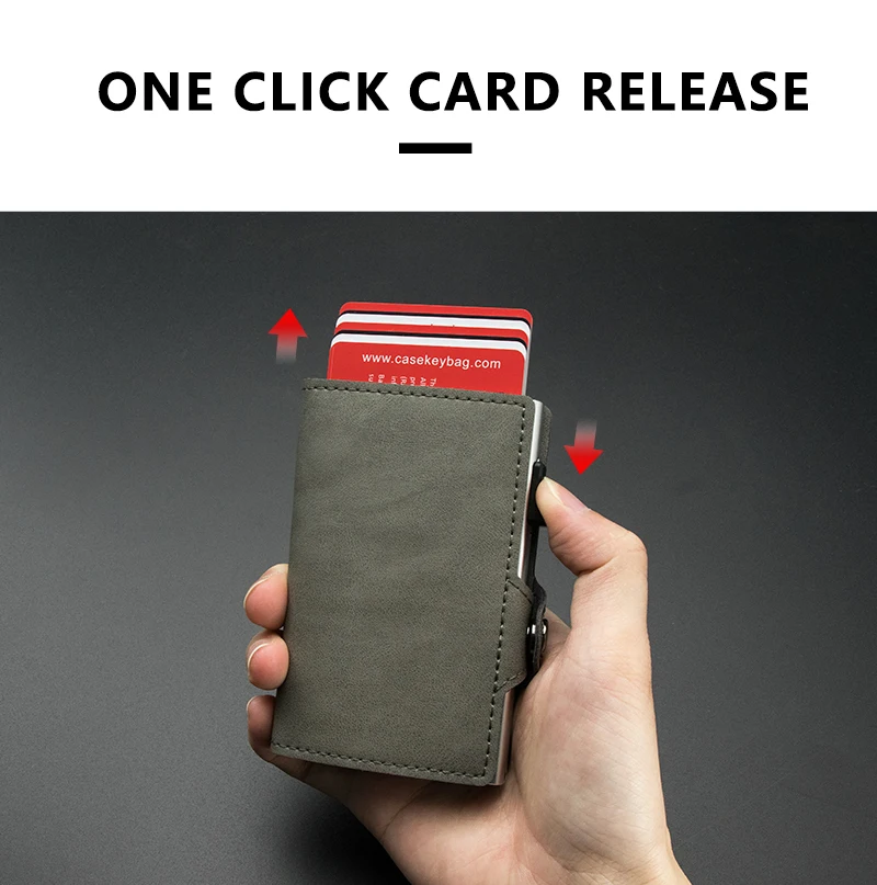 CASEKEY Pink Wallet Slim Minimalist Leather Pop UP Wallet Rfid Blocking Mini Aluminum Automatic Card Holder for Women Men